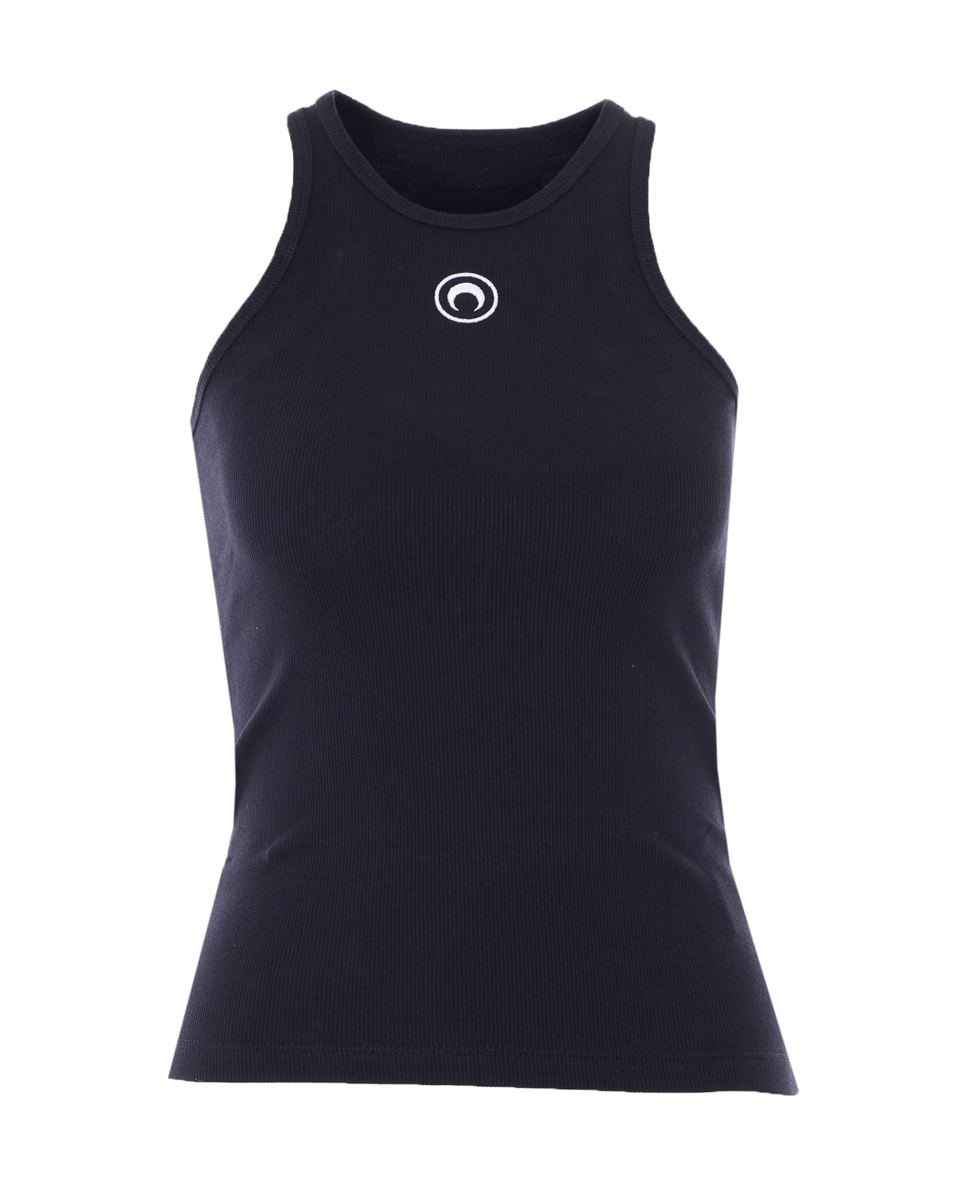 Marine Serre black Moon tank top, ribbed, embroidered moon logo on front, back logo