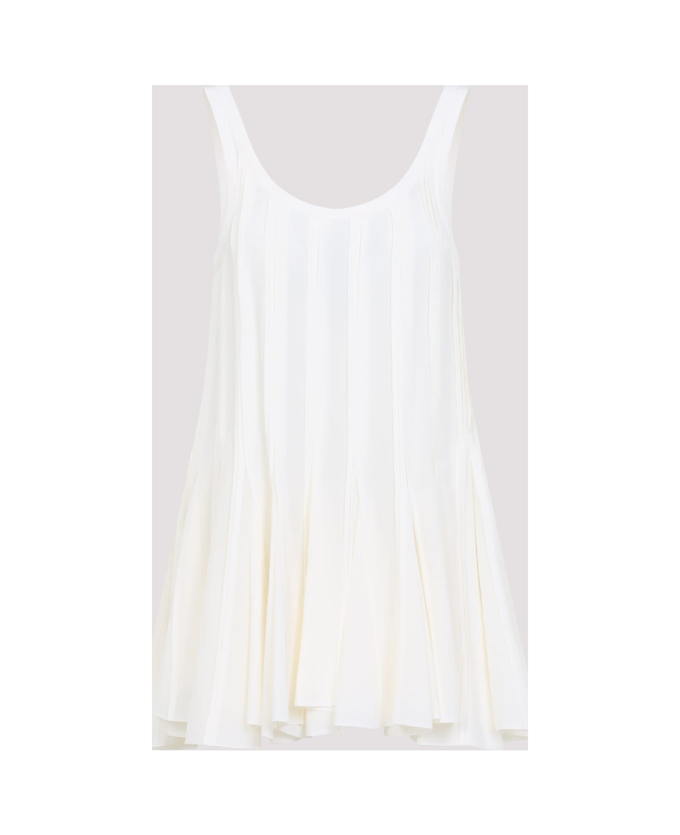 Carven Cream White Silk Pintuck Top. Pure cream white silk top, round neck, round back, sleeveless, pleated design, flared asymmetric hem, back ruffled detail.