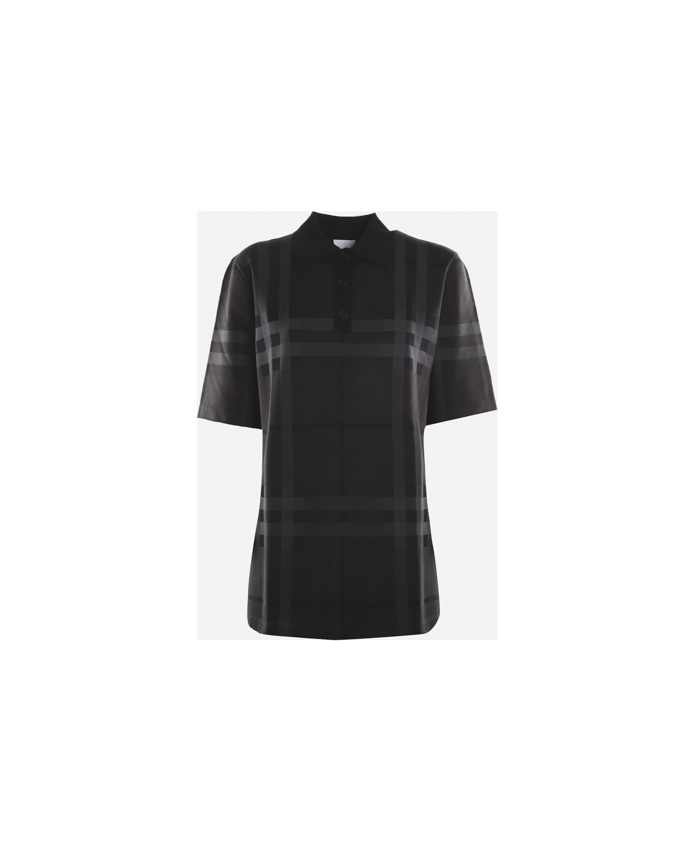 Black Oversized Silk Polo Shirt With All-over Check Motif from Burberry