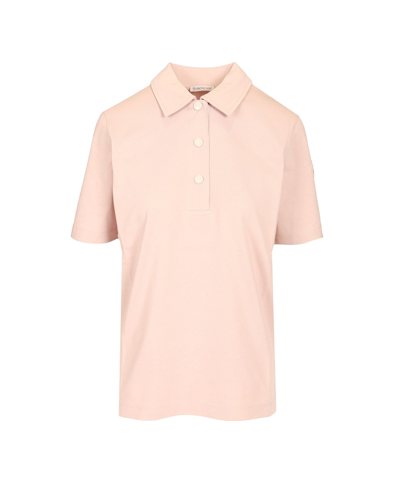 Moncler short-sleeved polo shirt in cotton, with tone-on-tone buttons and contrasting side patch.