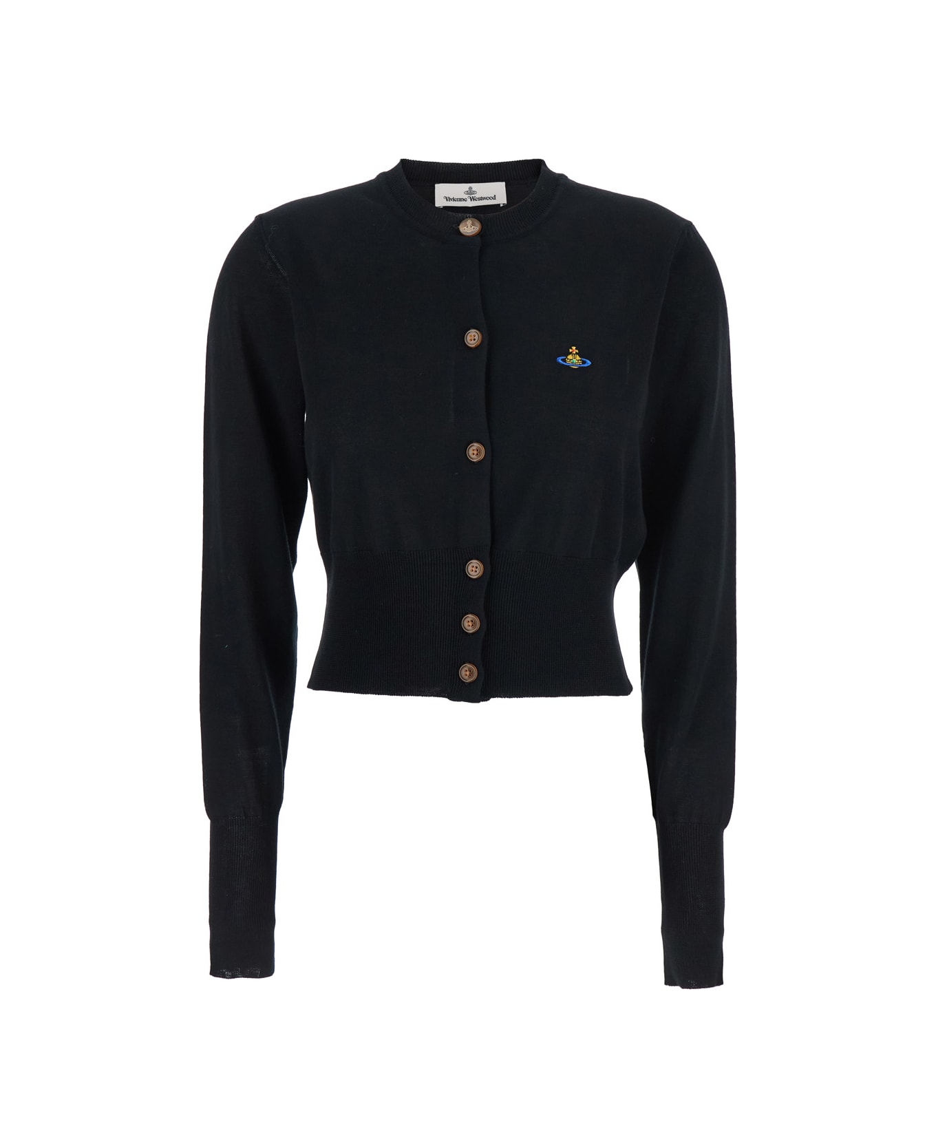 Cardigan Black Round neck Long sleeves Front button closure Front Orb embroidery Ribbed trims Straight hem Cropped style Cotton Regular fit