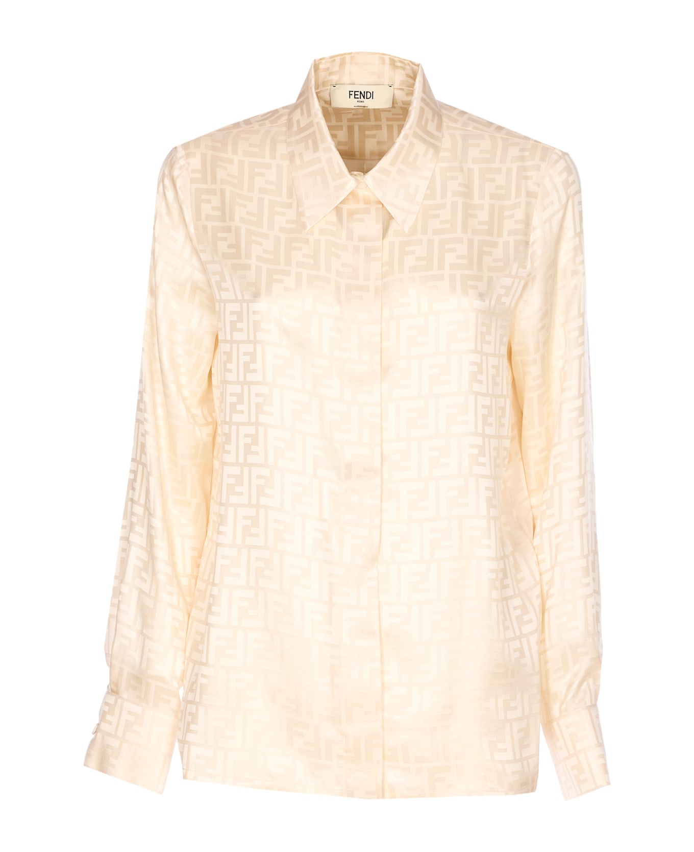 Fendi cream shirt with frontal buttons closure, regular collar, long sleeves, all over FF logo Composition: 100% Silk