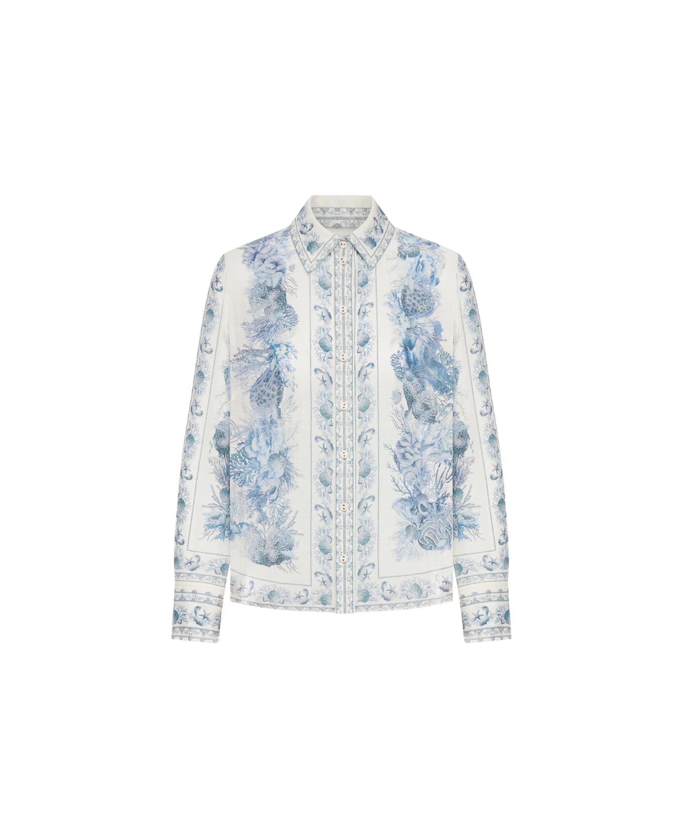 blue cotton button fastening all-over print long sleeves collared