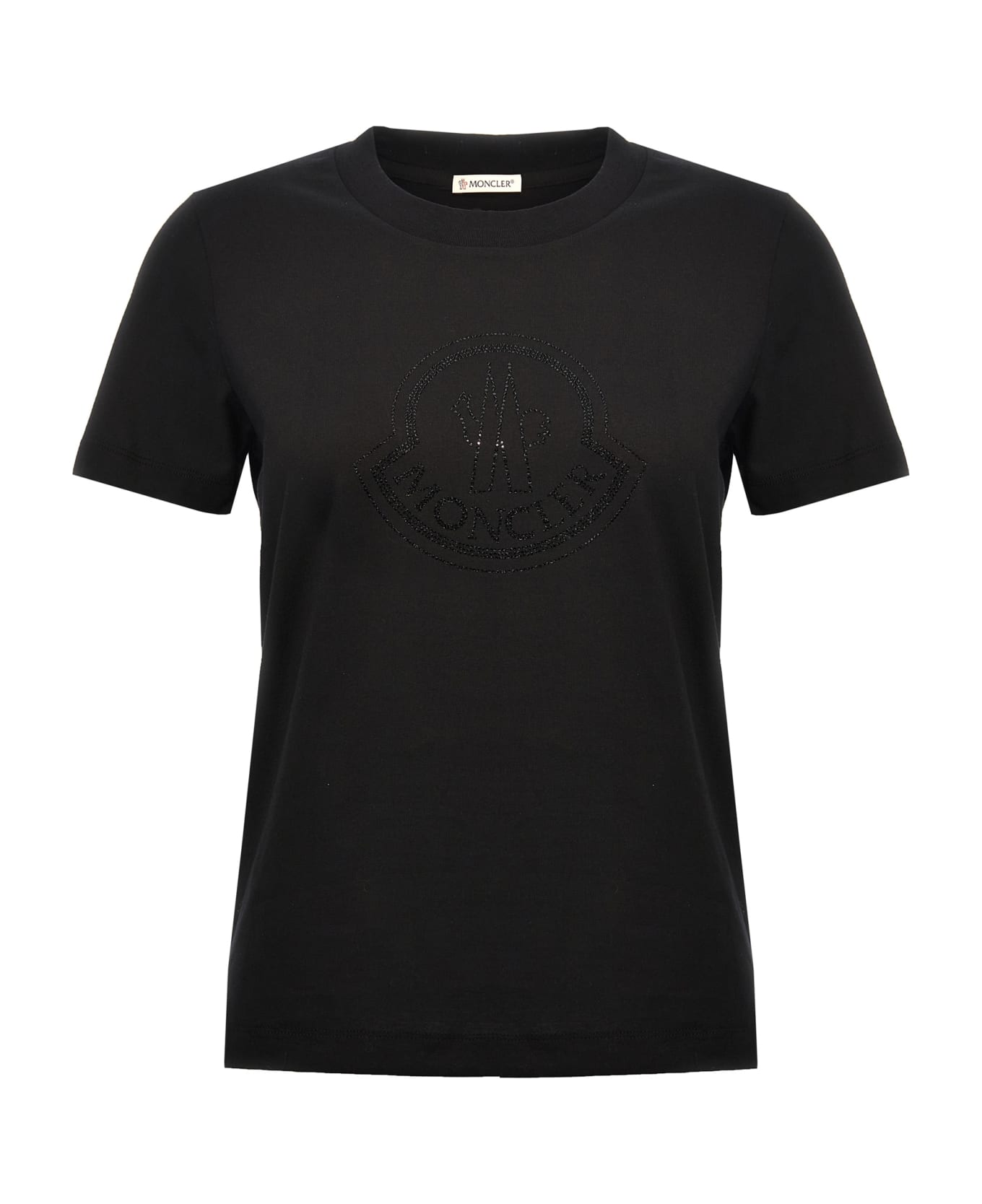 Cotton T-shirt with front rhinestone logo, crew neck, short sleeves.