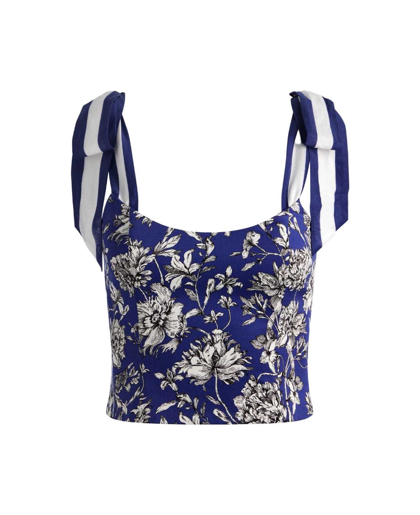 blue floral print scoop neck tie shoulder straps sleeveless
