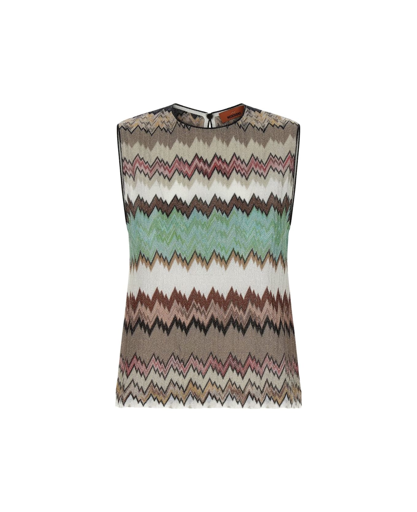 brown/multicolour zigzag pattern metallic threading crew neck button closure teardrop cut-out to the rear The item you receive may differ slightly from the item photographed. This is due to the artisanal nature with which all Missoni products are constructed.