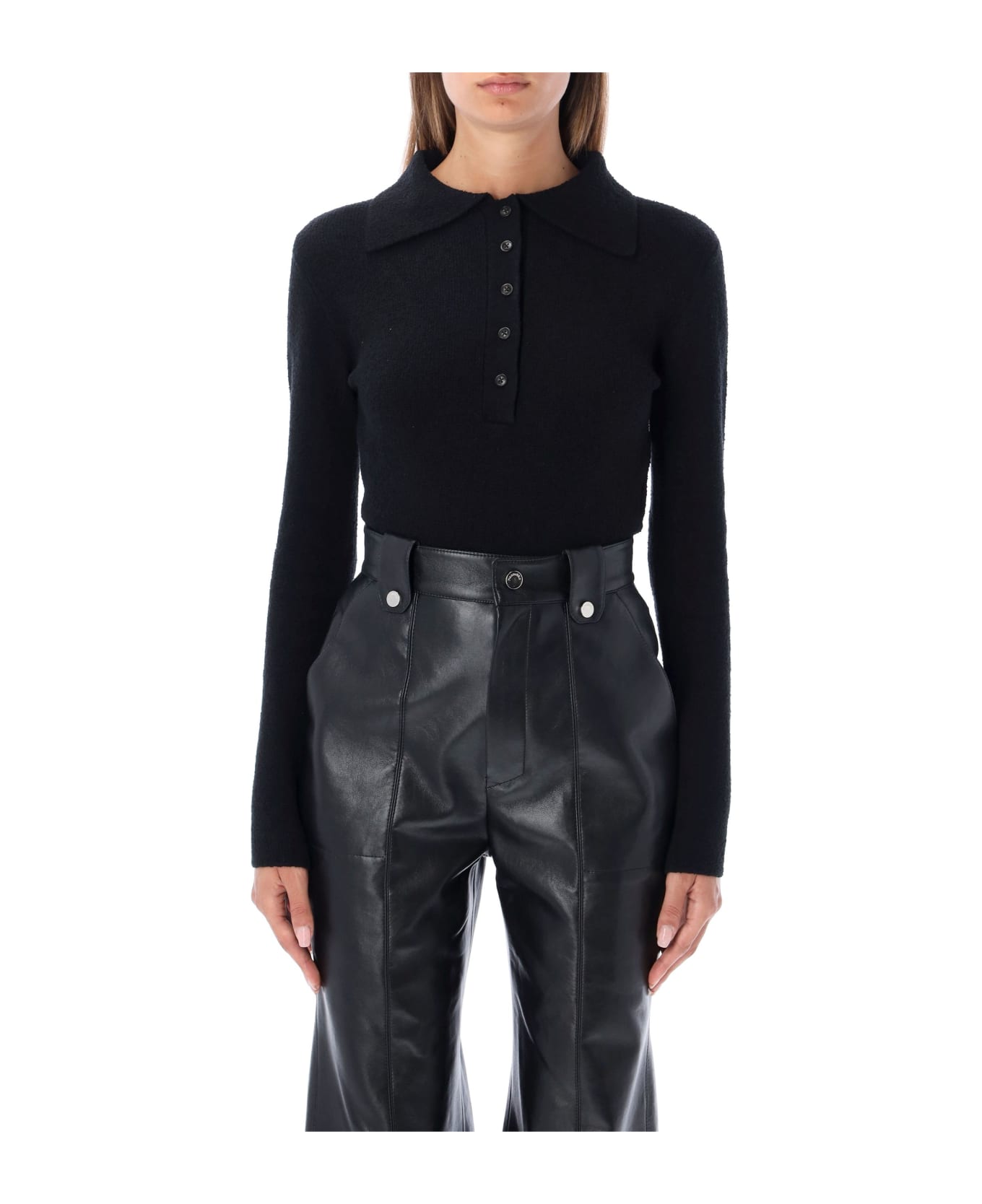Cotton Blend Jonelle Polo Neck Bodysuit By Nanushka. Featuring: Polo Collar Buttons Placket Long Sleeves The Model Is 1,72 M Tall And She's Wearing Size S