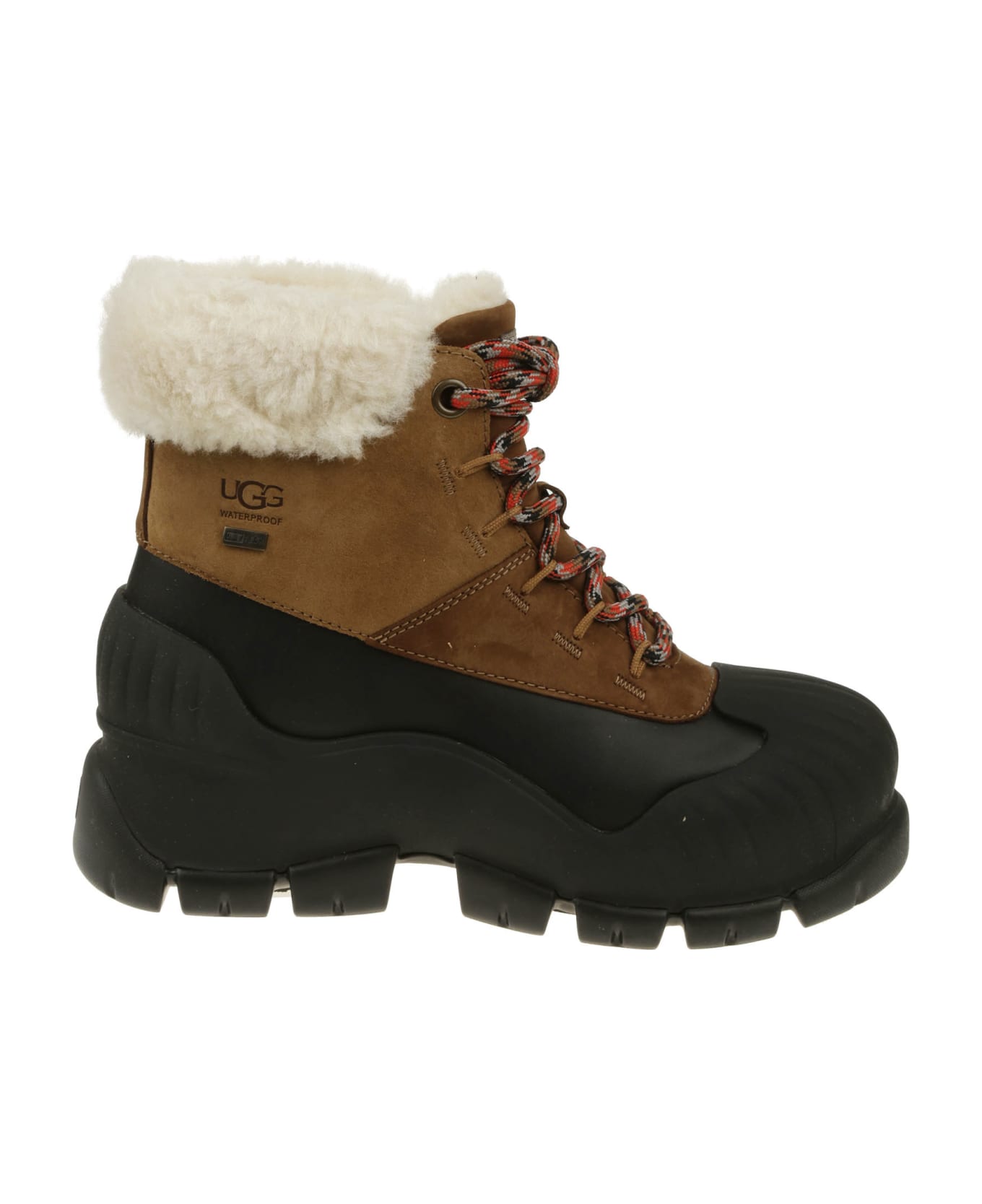 ADIROAM UGG boot is waterproof and certified for temperatures up to -32°C, with sherpa lining and UGGplush , made with waterproof leather and suede. Synthetic insole and foam insole, EVA midsole, Spider Rubber® sole for optimal traction. US size chart.