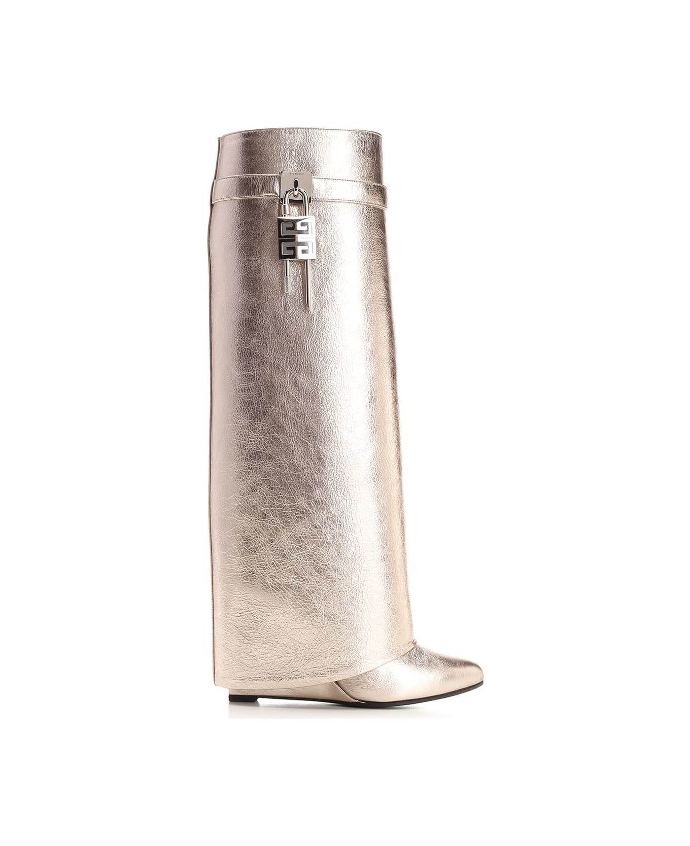 Dusty gold "Shark Lock" boots with tube shaft and hidden wedge by Givenchy. Composition: Main Material : 100 % CALF LEATHER