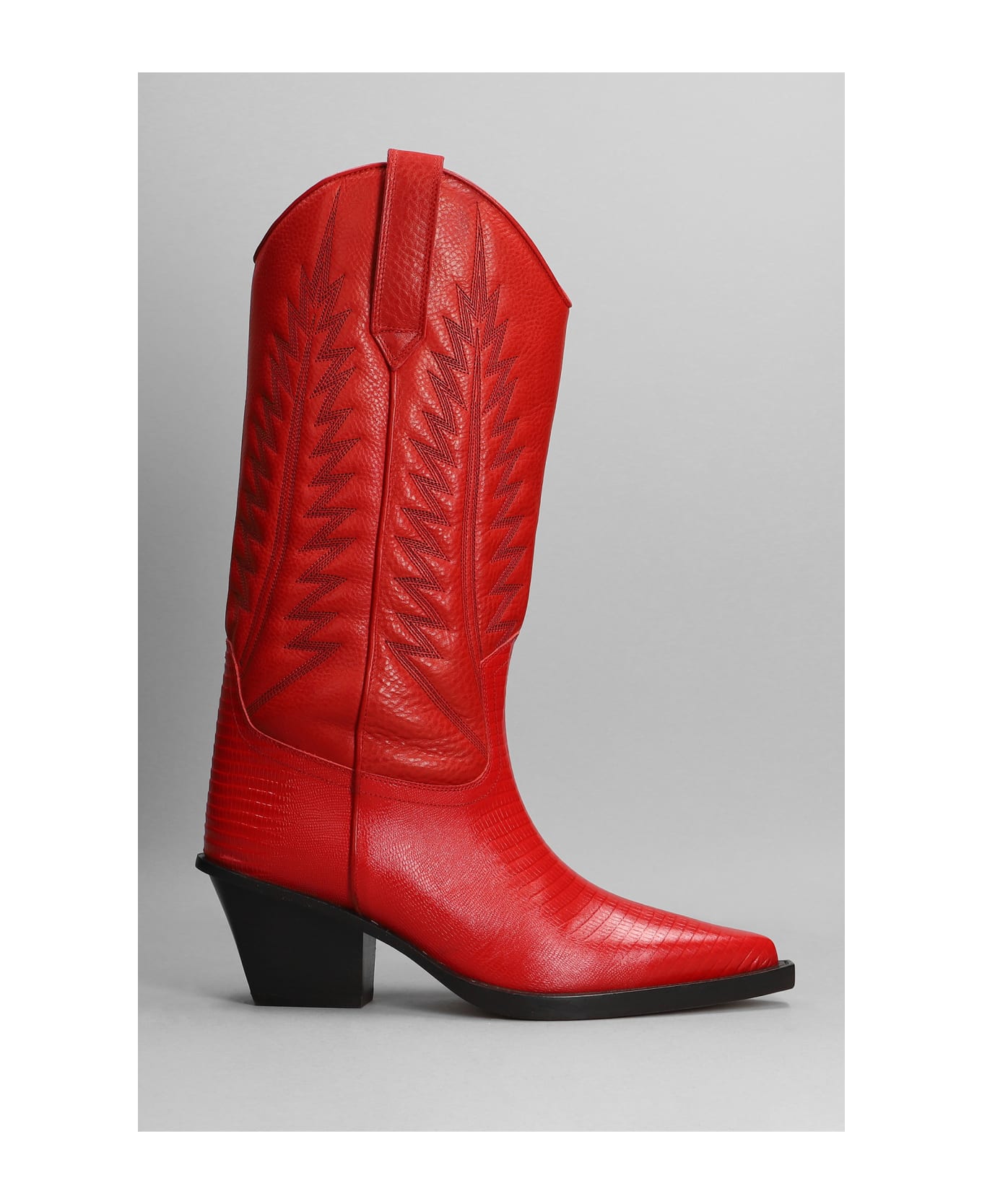 Rosario texan boots in red leather, pointed toe, embroidered detail, side pulltab, leather sole, 70 mm heel, 100% leather, Made in Italy