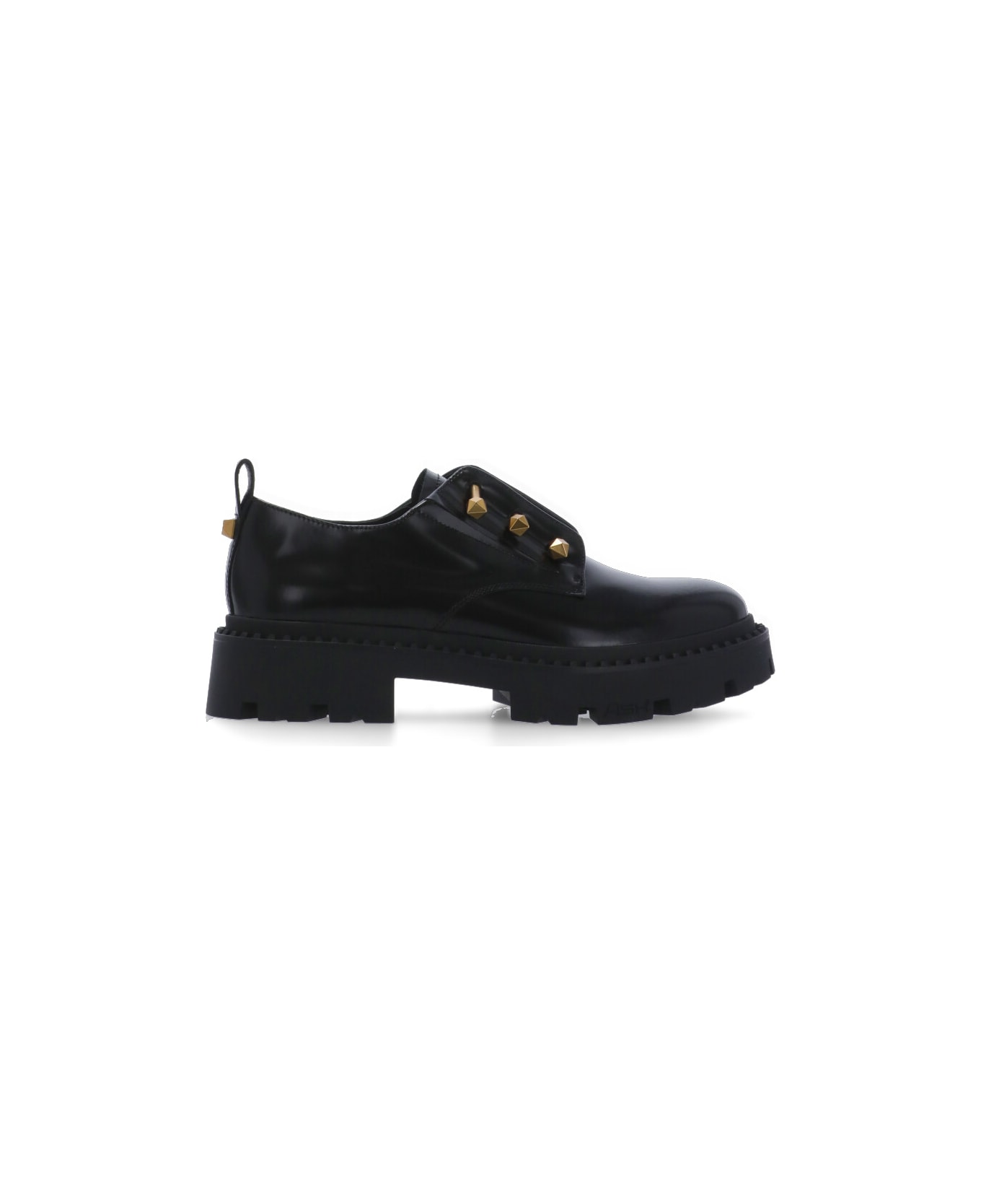 - Black Ash smooth leather loafers for woman - Round toe - Front metal logoed details - Rear metal stud detail - Raised rubber sole (4 cm)