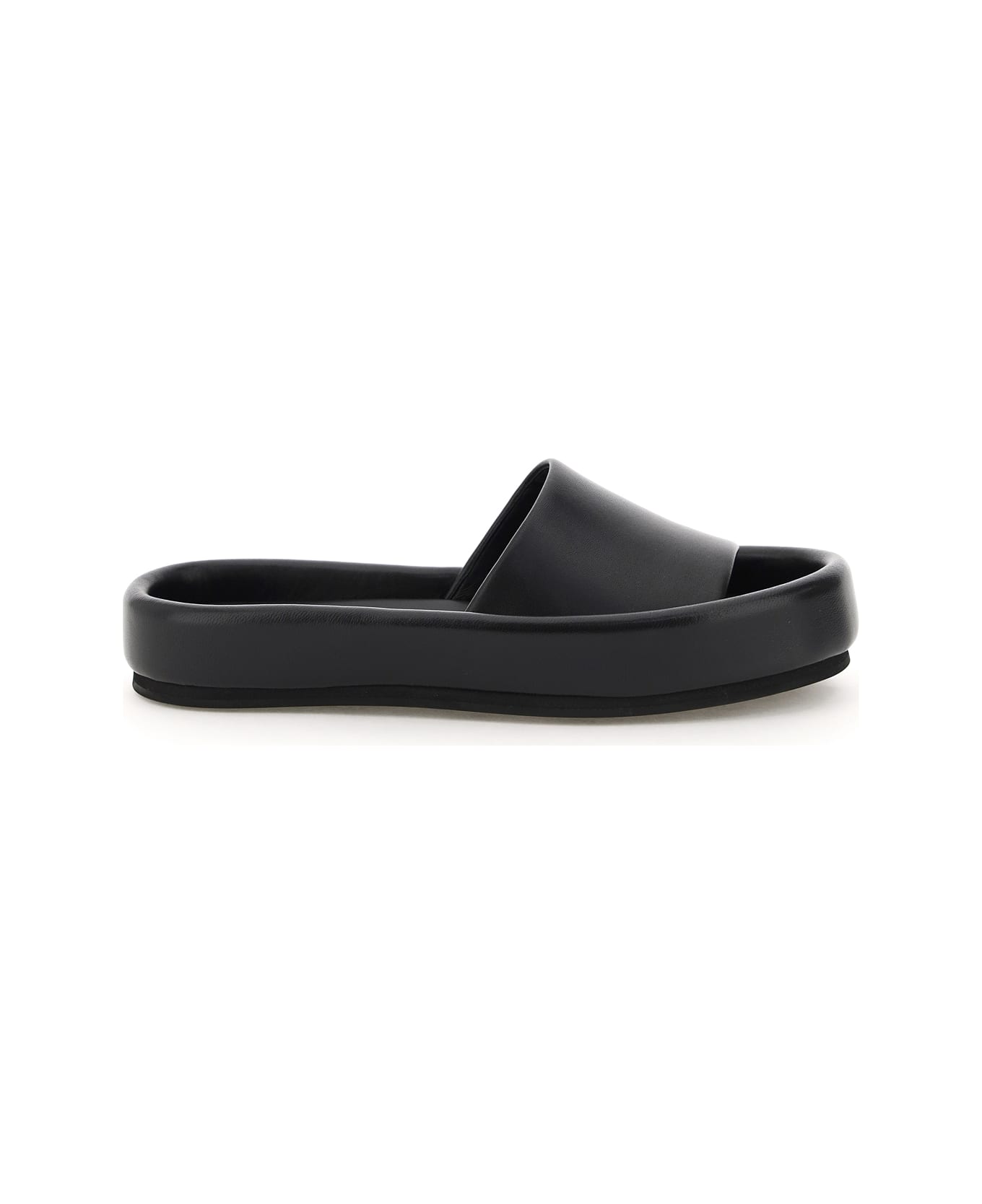 Venice slides by Khaite in smooth leather with single band and framed footbed. Leather interior, rubber sole. Composition: 100% agnello