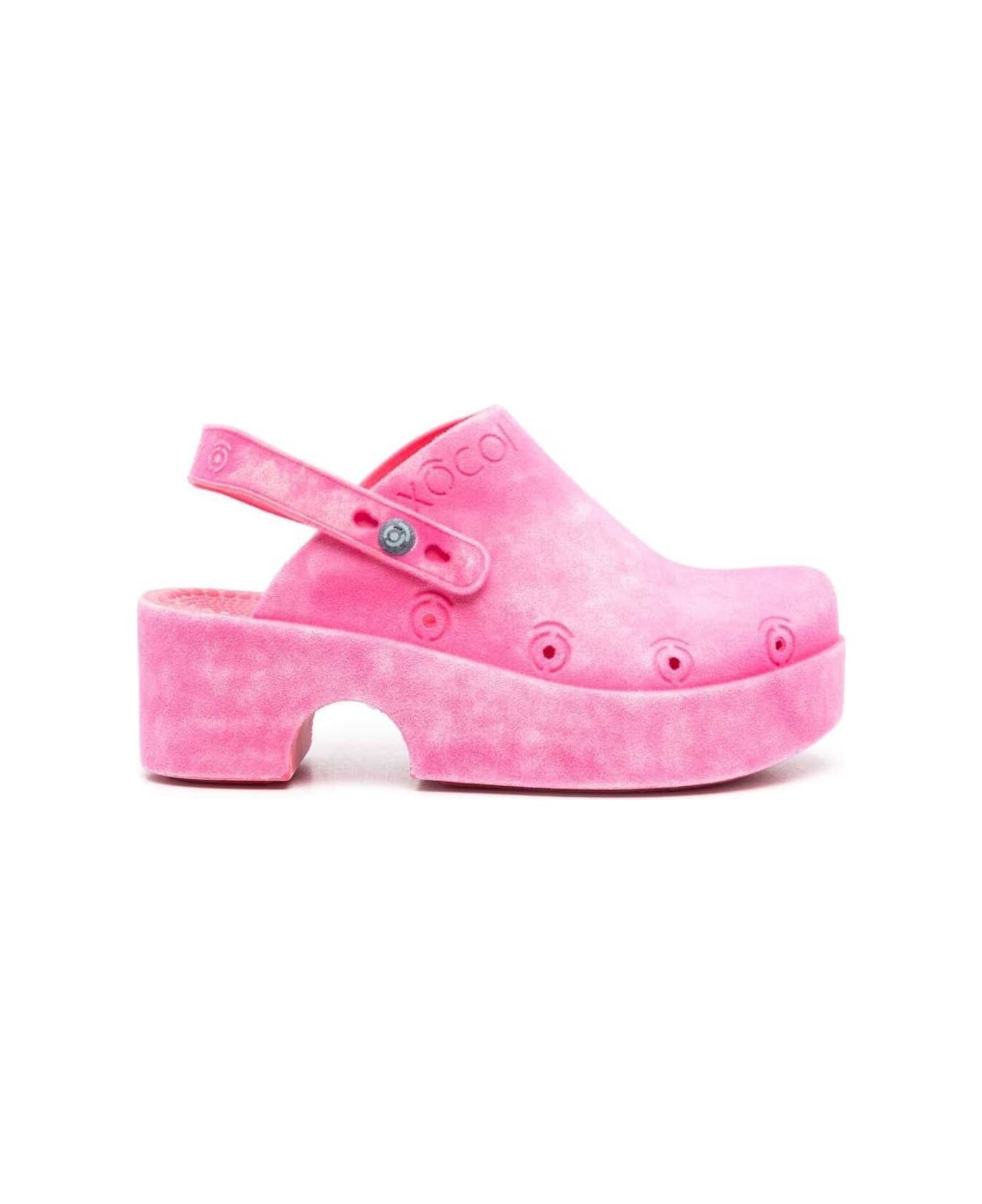 Stone Wash Pink Rubber And Velvet Clogs Woman
