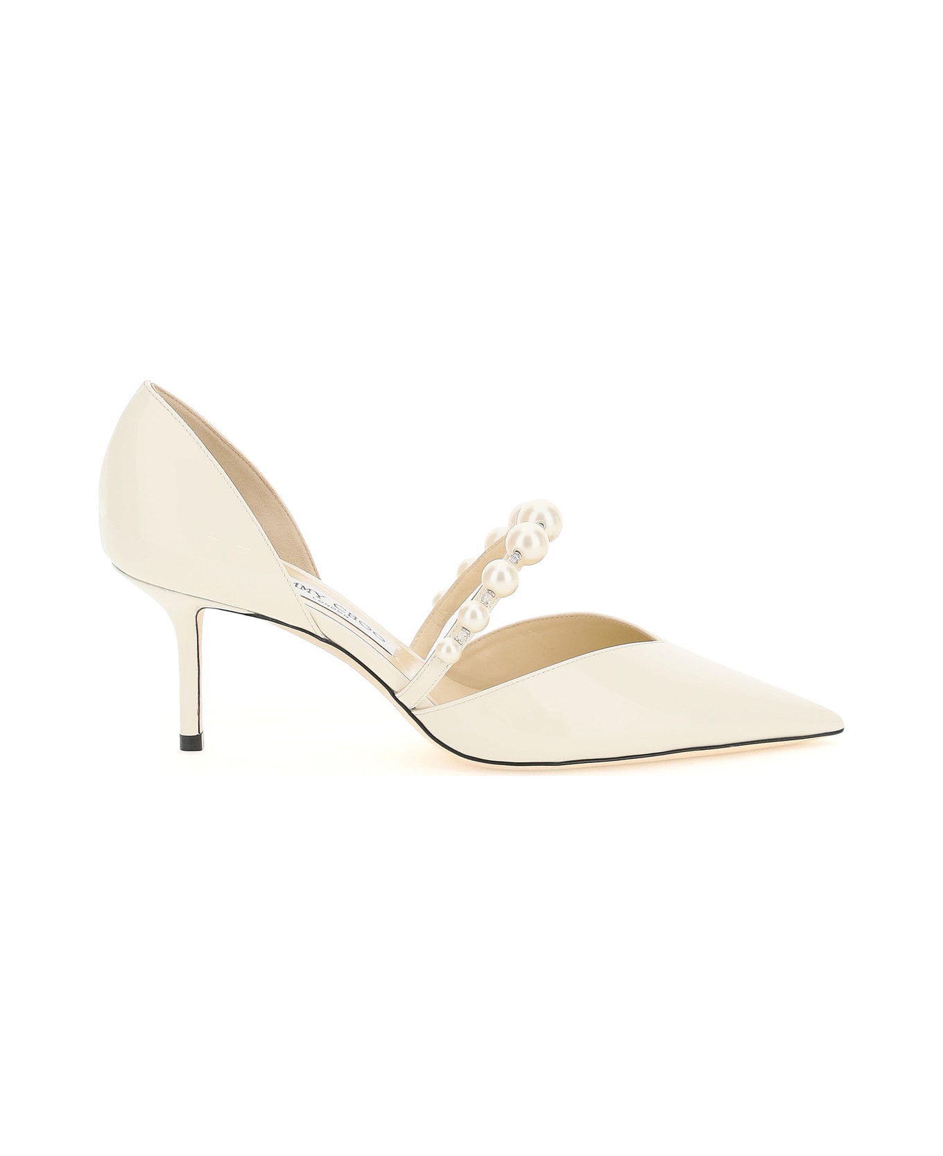 Jimmy Choo Aurelie pumps in polish leather, characterized by a frontal strap with pearls and chrystals. Pointed toe and stiletto 65 mm heel. Leather lining and insole. Composition: 100% LH