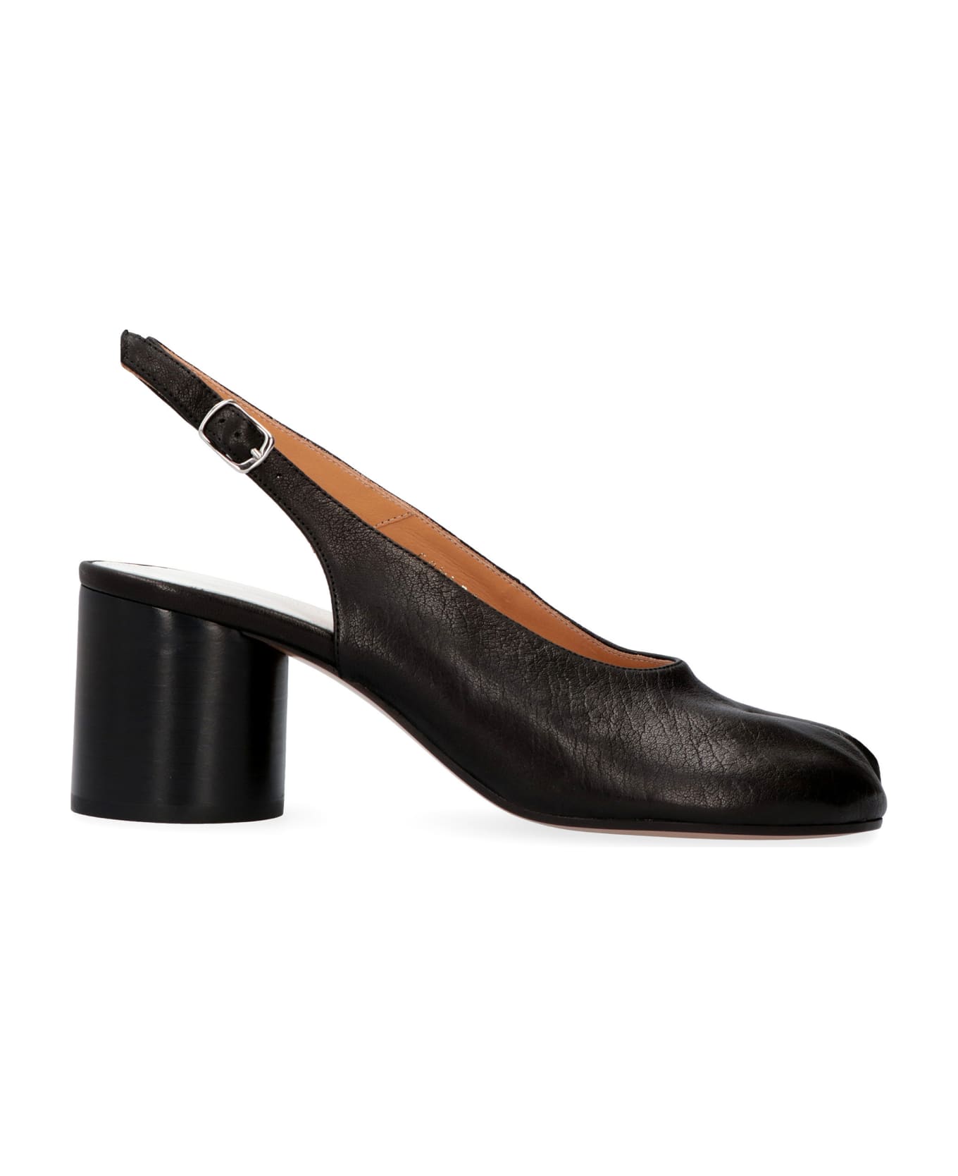 Iconic tabi cleft toe adjustable back strap with buckle cylindrical heel 100% cow hide, 100% leather Composition: 100% % Cow Hide, 100% % Leather