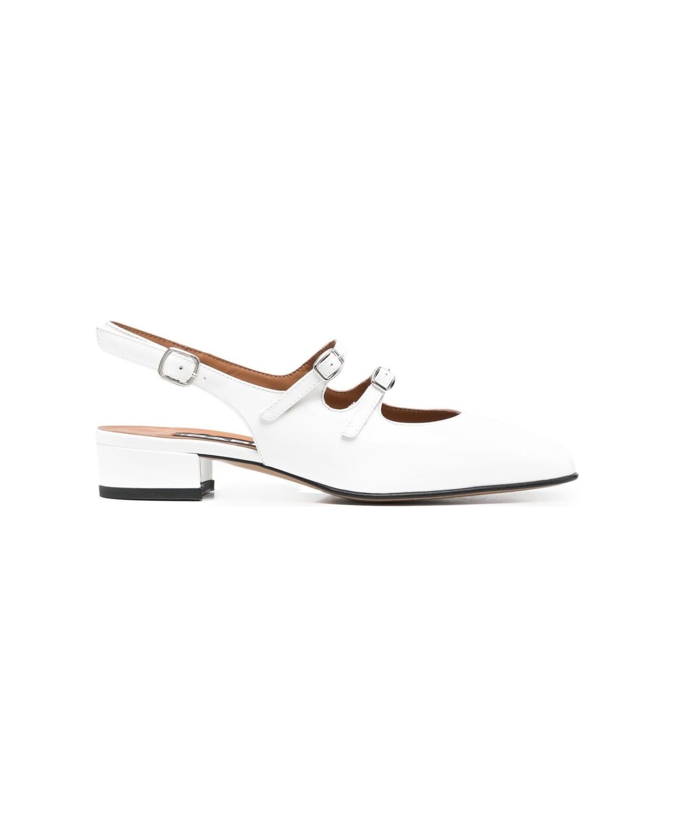Mary Jane pumps Square toe Ankle strap Slingback strap Buckle fastening Patent finish Branded footbed Low stacked heel 3cm White Leather Regular fit
