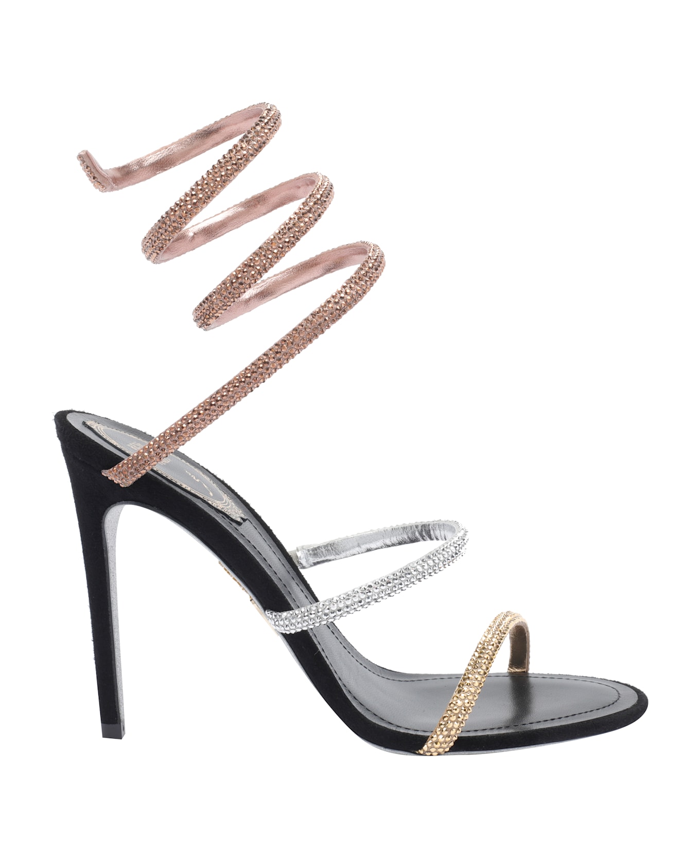 Rene' Caovilla black Cleo sandals, round toe, strass around the ankle, leather upper Composition: 100% Fabric With Strass, 100% Suede Leather/leather Sole