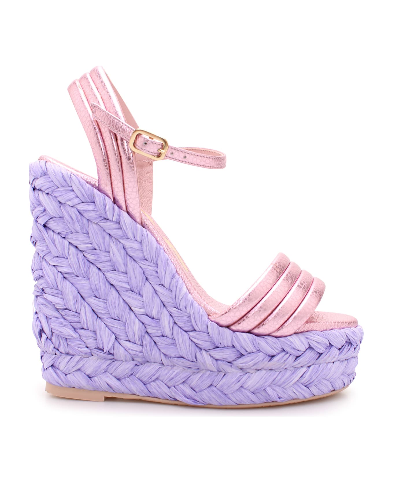 Wedge bottom in woven rope, shiny finish, ankle strap with buckle, rubber sole, by Ras Composition: 100% Leather; Sole:, 100% Rubber