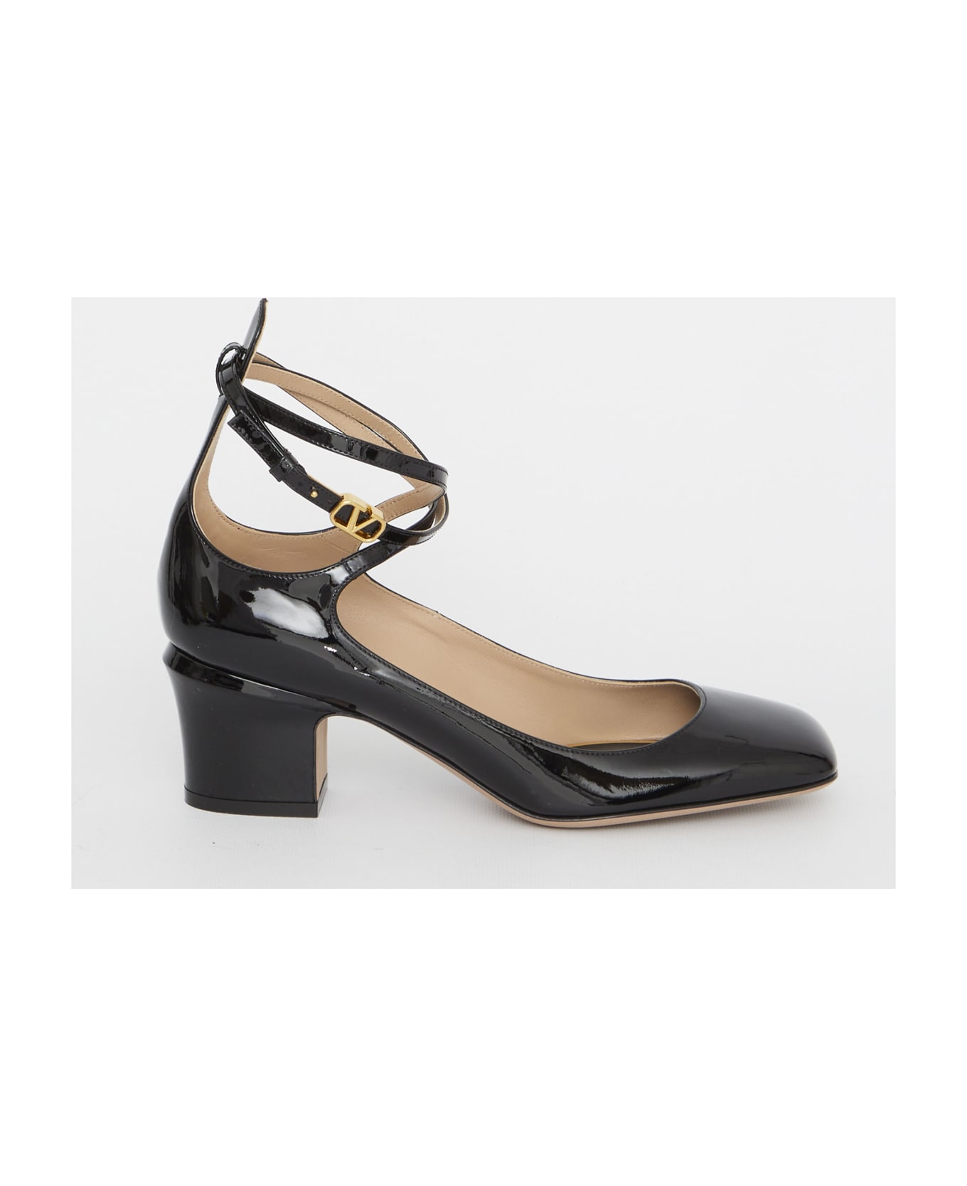 Valentino Garavani Tan-Go sandals in black patent leather. They feature adjustable ankle strap with VLogo Signature buckle and square large heel. Heel height: 6cm ITA size.