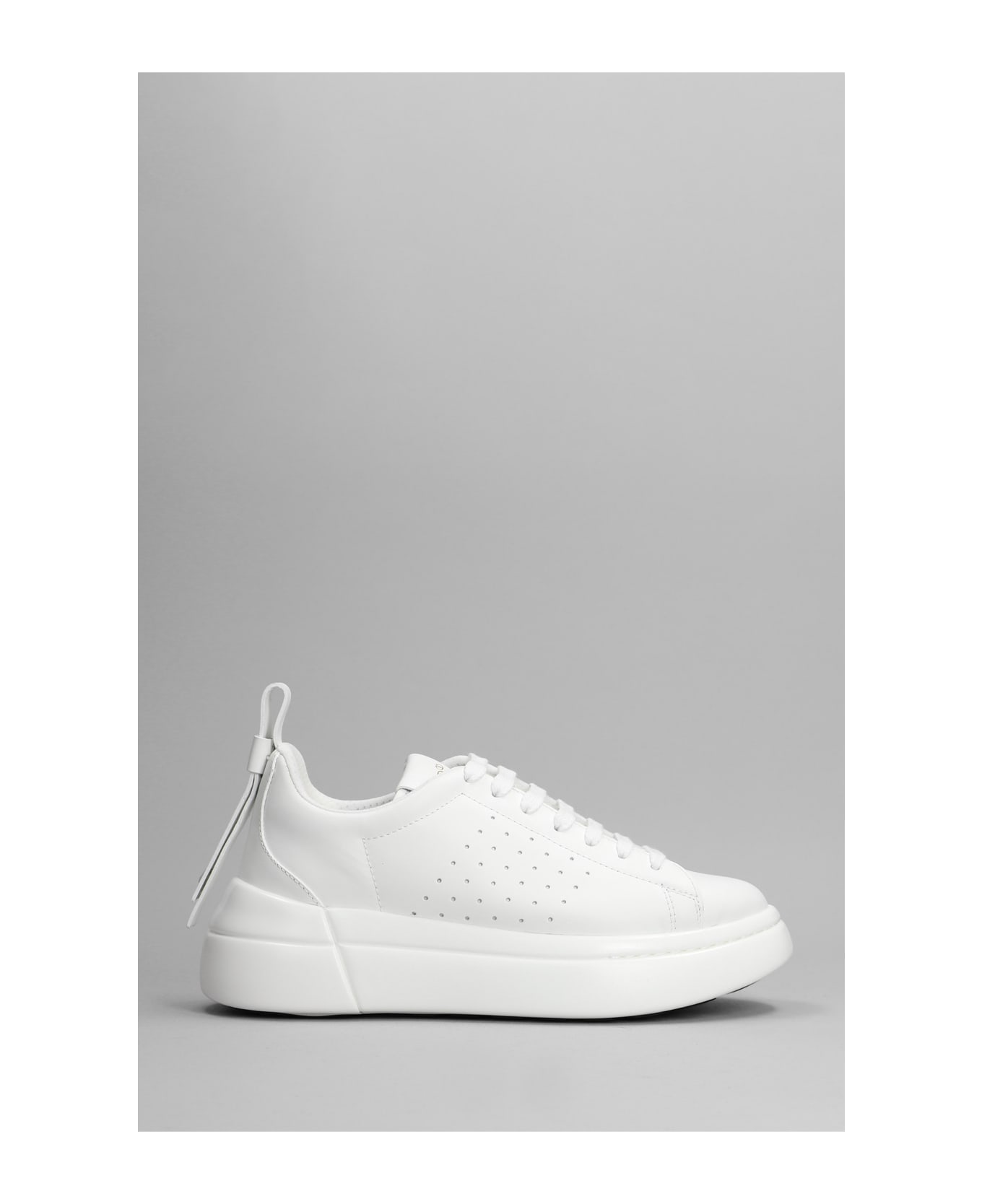 Bowalk Sneakers in white leather, laces, logo on heel, perfored side, platform rubber sole, 100% leather, Made in Italy