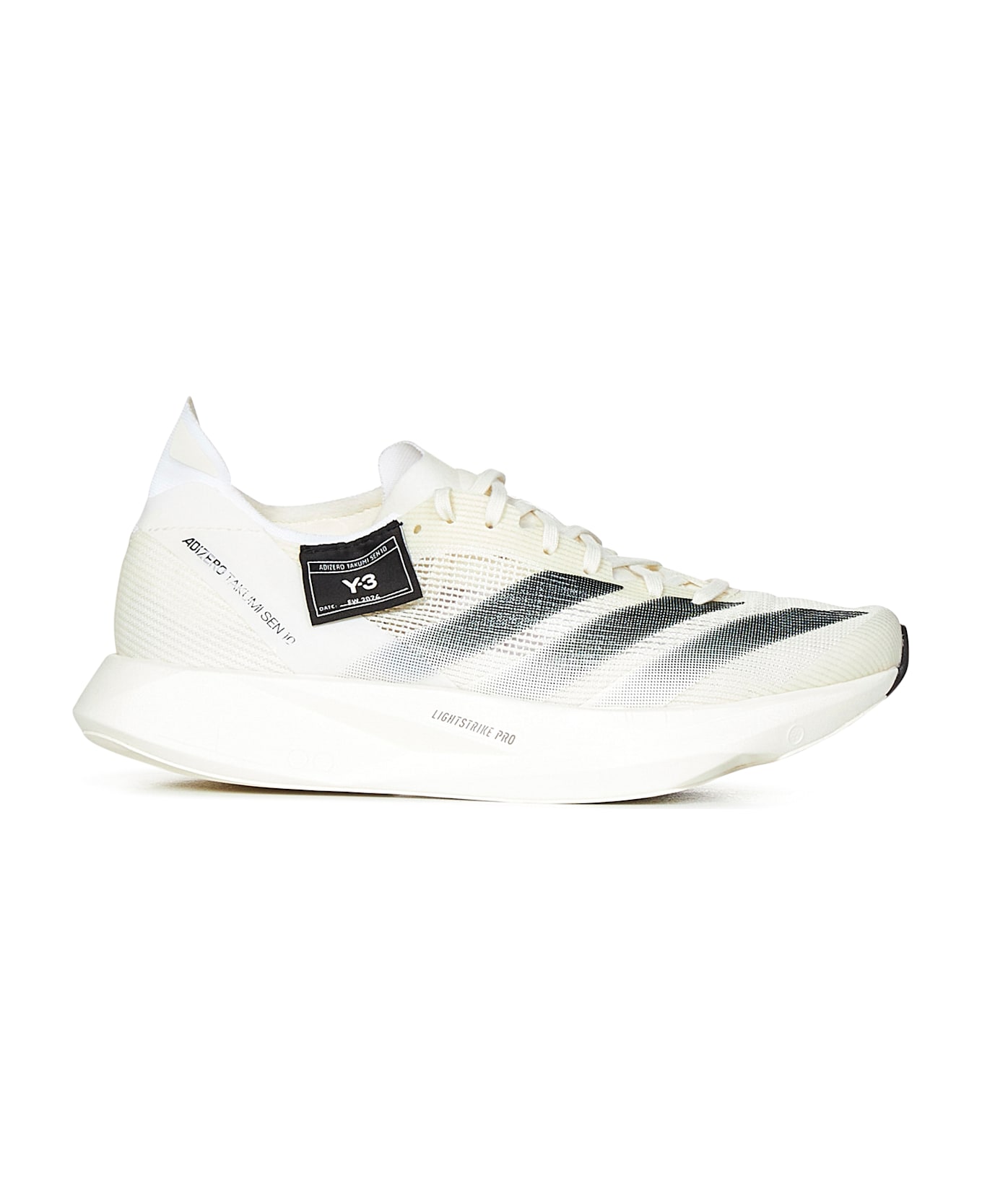 Composition: Front Lacing; Round Tip Y-3 Logo Embossed On The Tongue Upper With Ultra-light Lightstrike Pro Compound To Aid Speed And Carbon-reinforced Elements To Aid Forward Thrust Three Contrasting Shaded Stripes On The External Side And Logo Label On The External Side Of The Right Shoe Signature Yohji Yamamoto Logo And Three White Stripes On The Outside Of The Left Shoe Tone-on-tone Rubber Sole With Contrasting Logo On The External Side And Raised Toe Cap White Color 100% Fabric, 100% Rubber Made In China