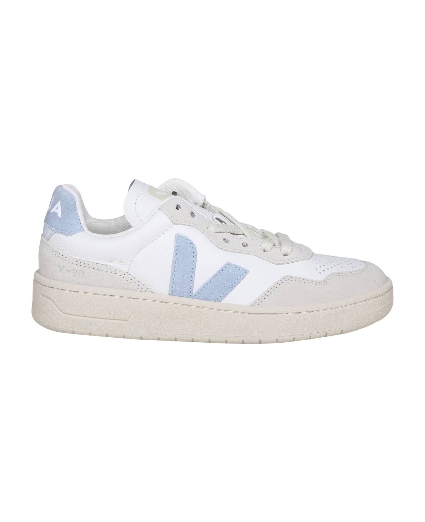 V 90 Sneakers In White And Light Blue Leather And Suede