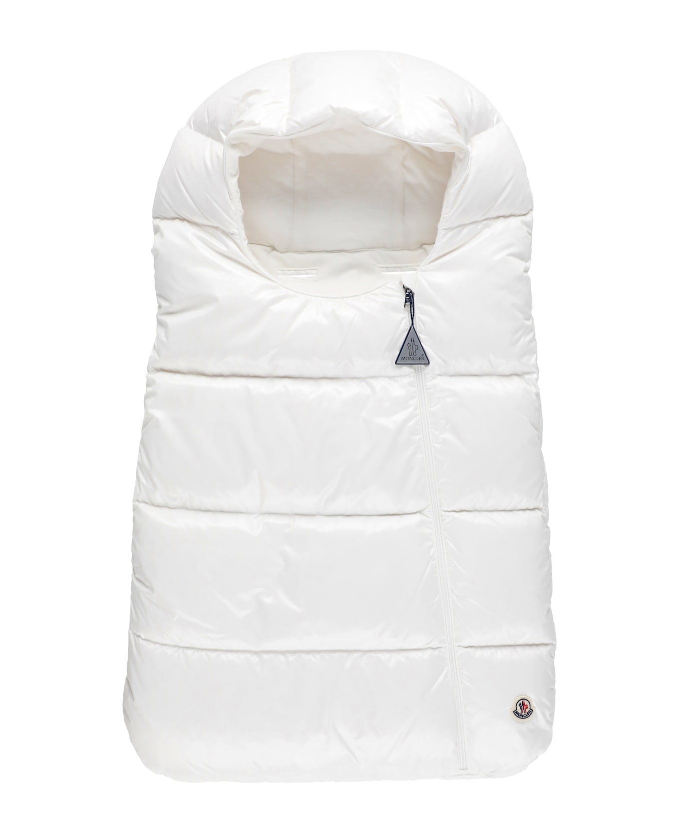 - White Moncler Baby padded bag for boy - Padded lining - Front contrasting color Moncler lettering - Zip fastening