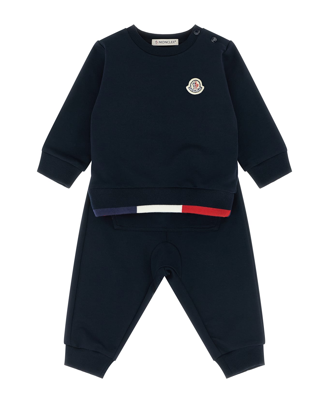 KIDS Set in stretch cotton jersey consisting of crewneck sweatshirt, front felt logo patch, snap buttons on the left shoulder, long sleeves with cuffs, garment with tricolor hem and joggers with elastic waistband, pocket, ankle cuffs.