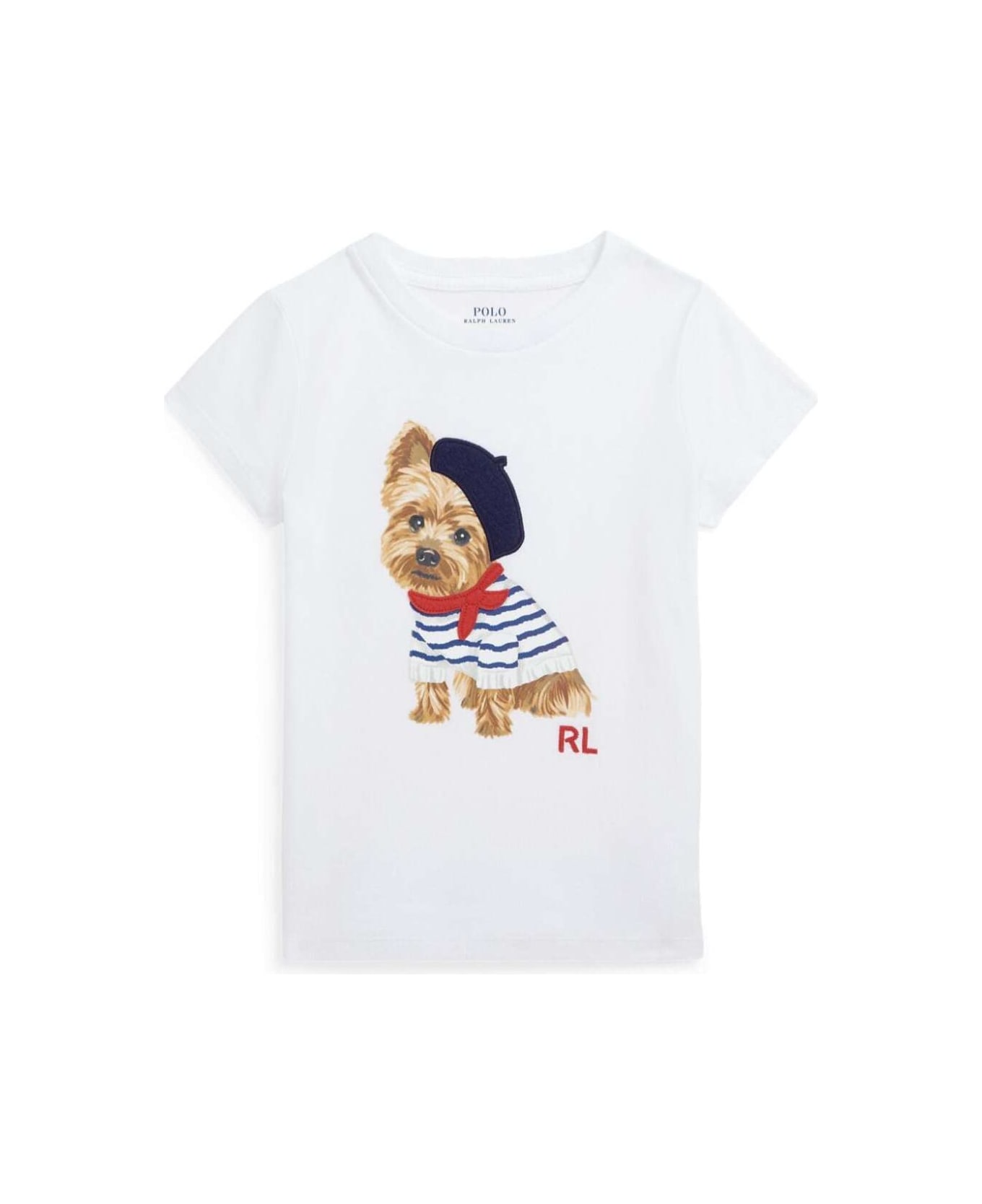 White T-shirt With 'cane Francese' Print In Cotton Girl