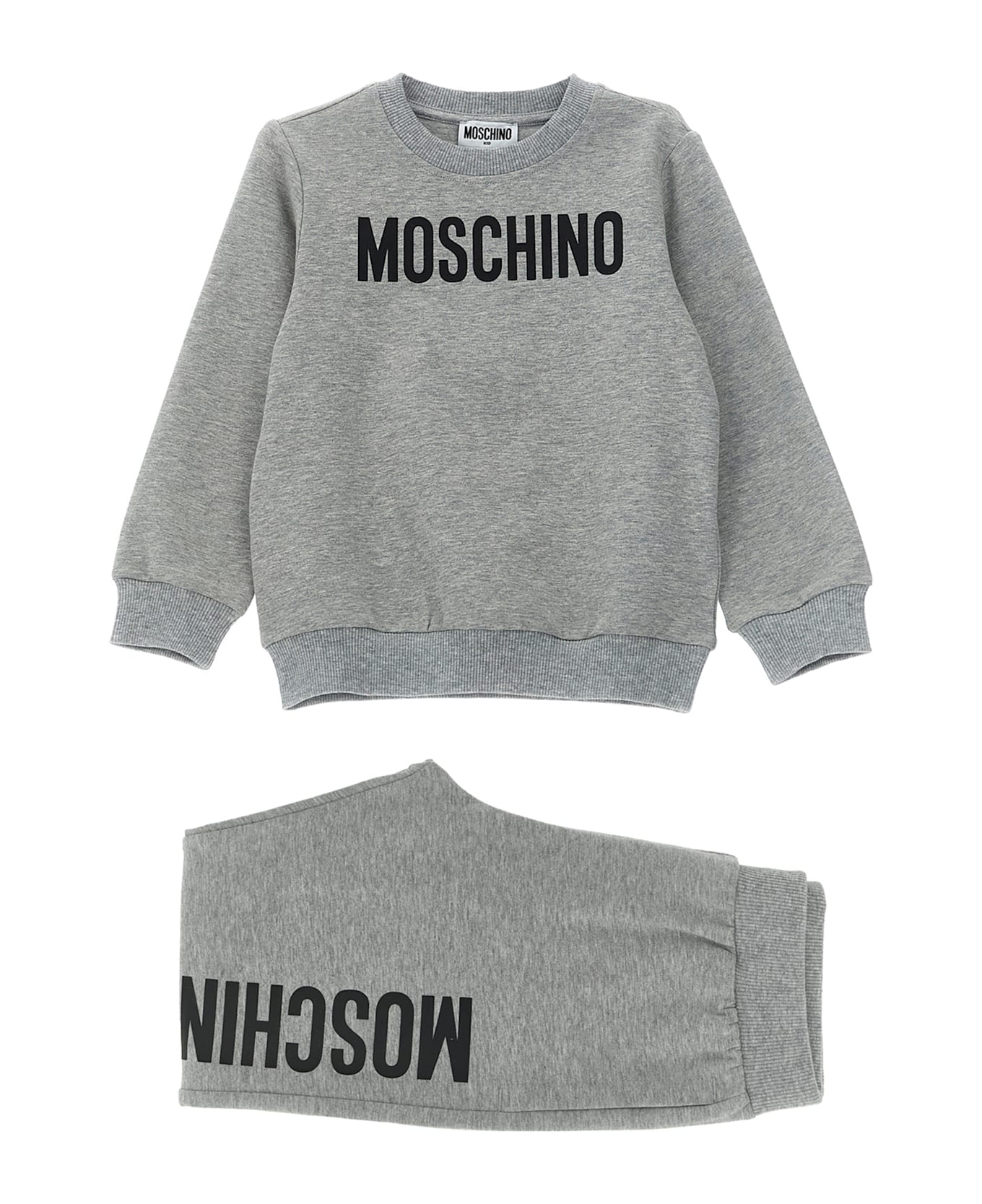 Slightly fleece cotton suit with logo print consisting of crewneck sweatshirt, long sleeves with cuffs and joggers with elastic and drawstring waist, pockets, ankle cuffs. Composition: 96% cotton, 4% elastane
