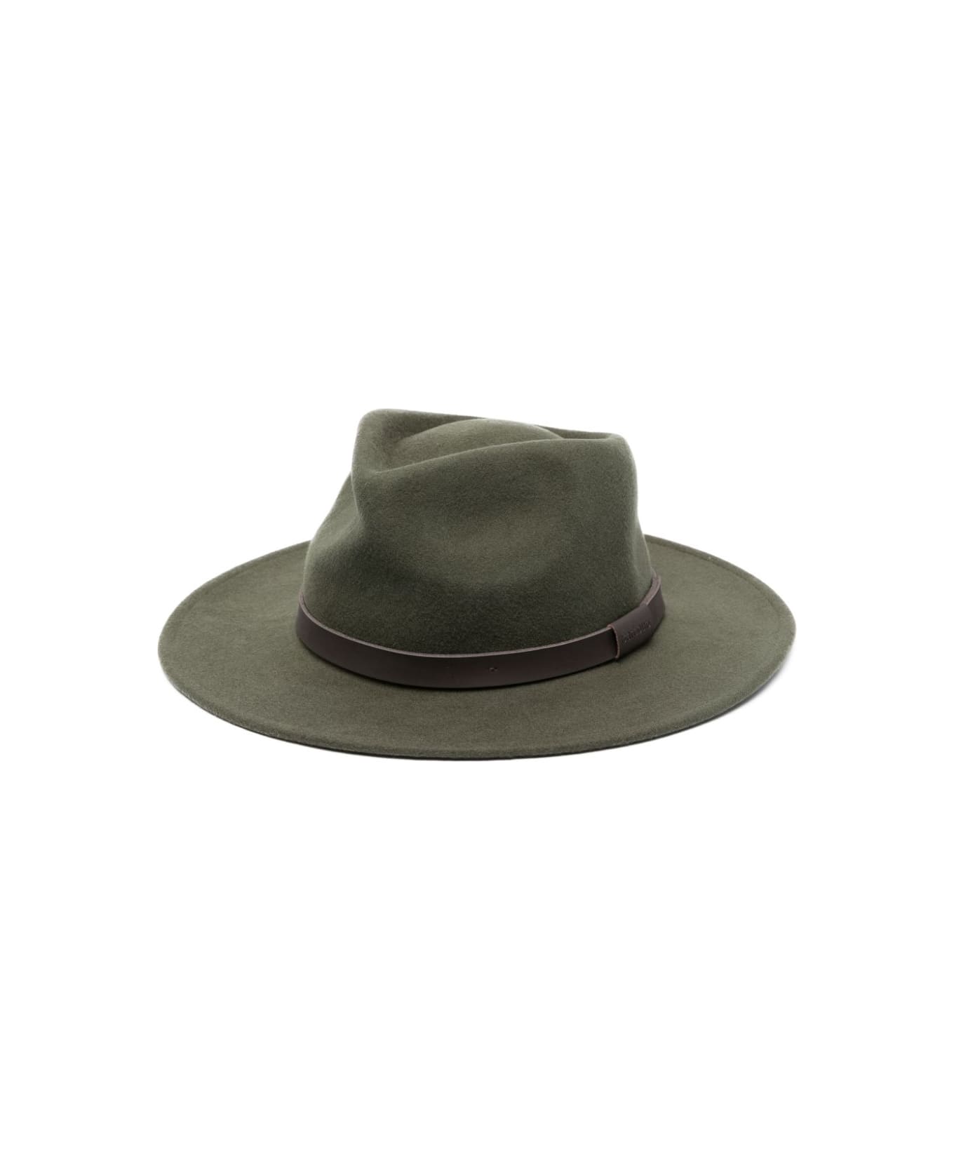 olive green wool felted debossed logo to the side leather band centre-dent crown flat brim pull-on style