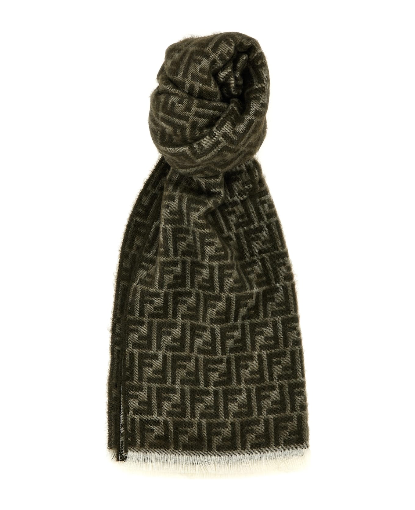 Rectangular 'FF' jacquard wool scarf, fringed at the edges. Composition: 100% virgin wool