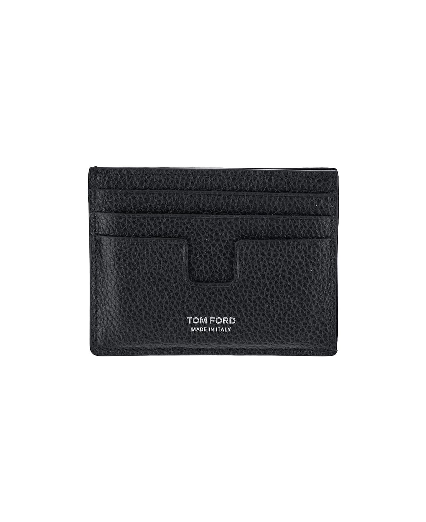 Tom Ford card holder in black leather with logo print. The item is featured by solid tone and card slots. Composition: 100%CALF LEATHER