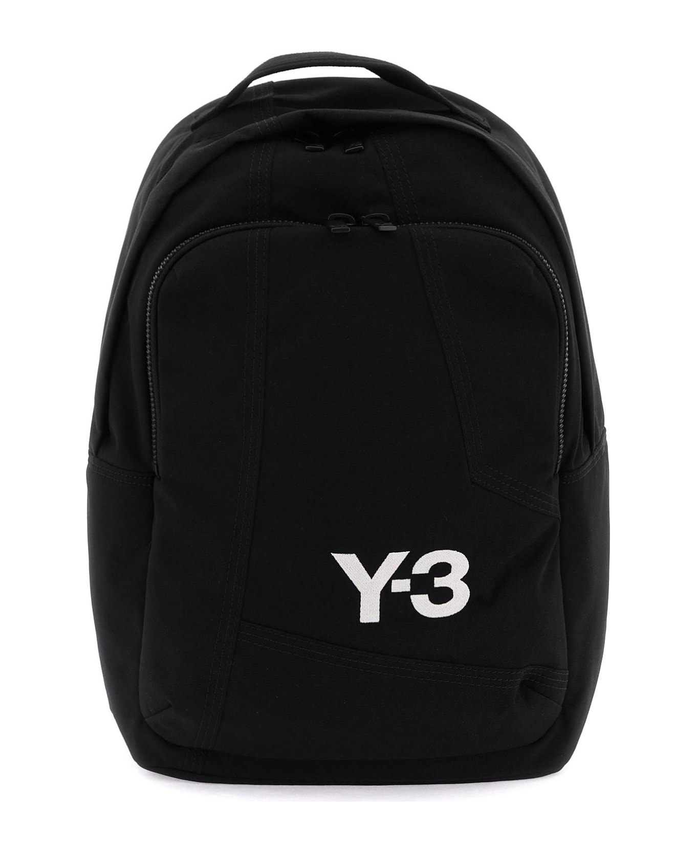 Cotton canvas Classic backpack by Y-3 with contrasting embroidered lettering logo on the front zippered pocket. Main compartment with two-way zippered closure, lined interior with a zippered pocket and a slit one, padded back and adjustable straps and webbing single handle.