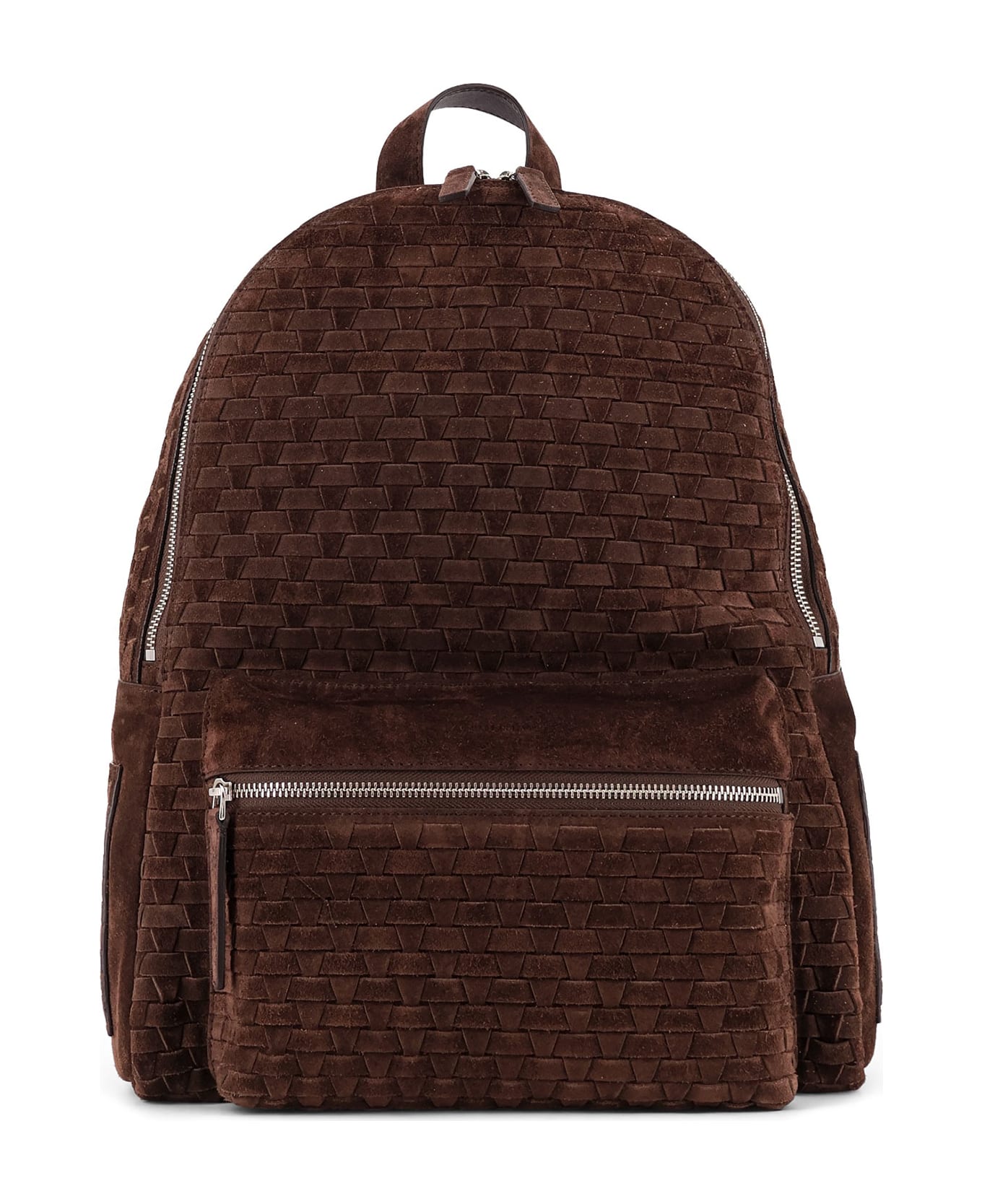 Suede Backpack With Woven Pattern