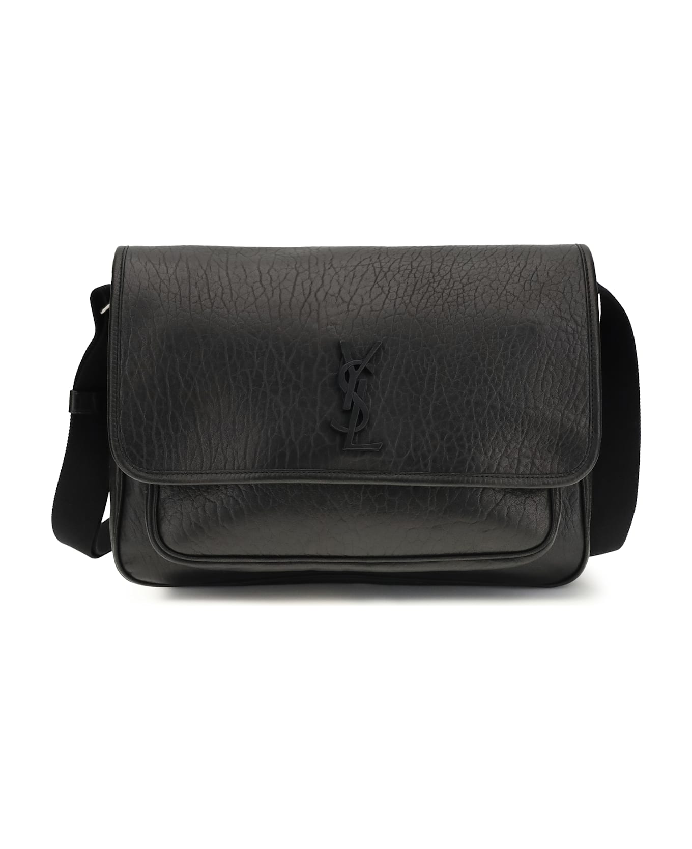 The niki shoulder bag by saint laurent features a grainy texture and sophisticated design. the cassandre logo plaque and logo tag on the front add a touch of distinctive elegance. the adjustable shoulder strap allows for personalized comfort, while the fold-over top with magnetic closure ensures practicality. the bag also includes a slip pocket on the back, a main compartment, and an internal slip pocket, offering ample space to organize your belongings in style.