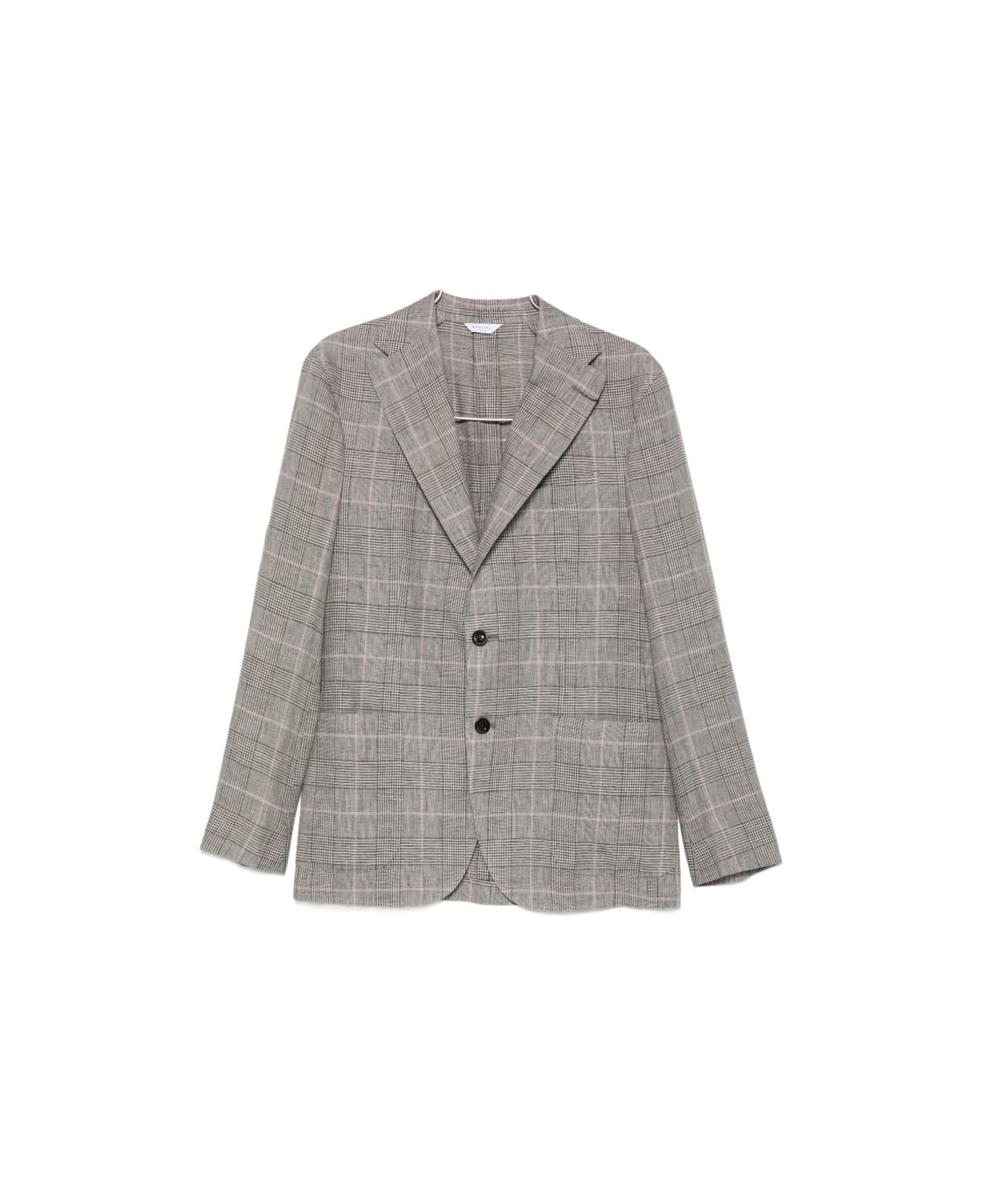 grey check pattern front button fastening peak lapels welt pocket flap pockets