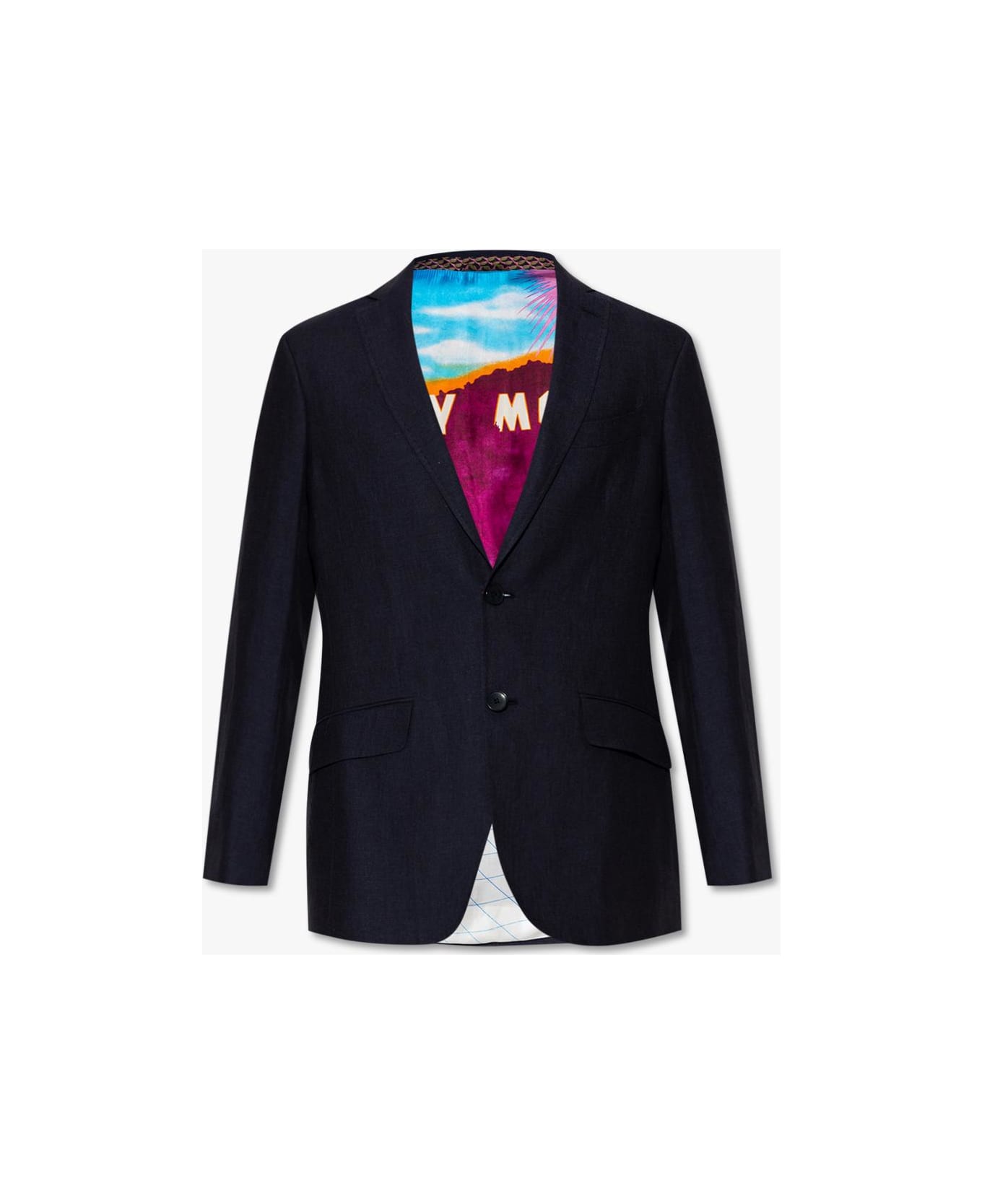 Navy blue blazer from Etro. Made of linen with a single-breasted silhouette, this style fastens with buttons and features notch lapels, one slip pocket, two flapped pockets, long sleeves with button cuffs, colourful, patterned lining with a satin trim and Composition: 100% Linen