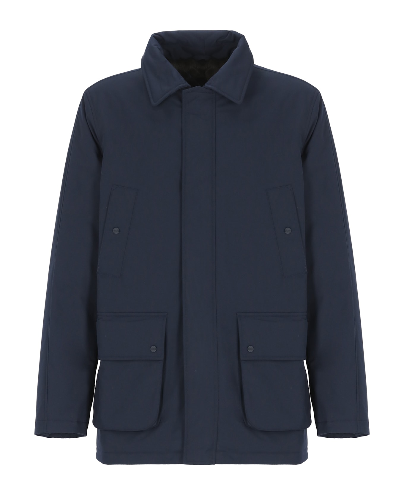 - Herno black man's padded jacket - Collar - Long sleeves - Two front button pockets - Two front flap and button pockets - Front zip and buttons fastening - Faux fur interior Composition: 100% Polyester Lining:, 100% Polyamide Filling:, 100% Polyester