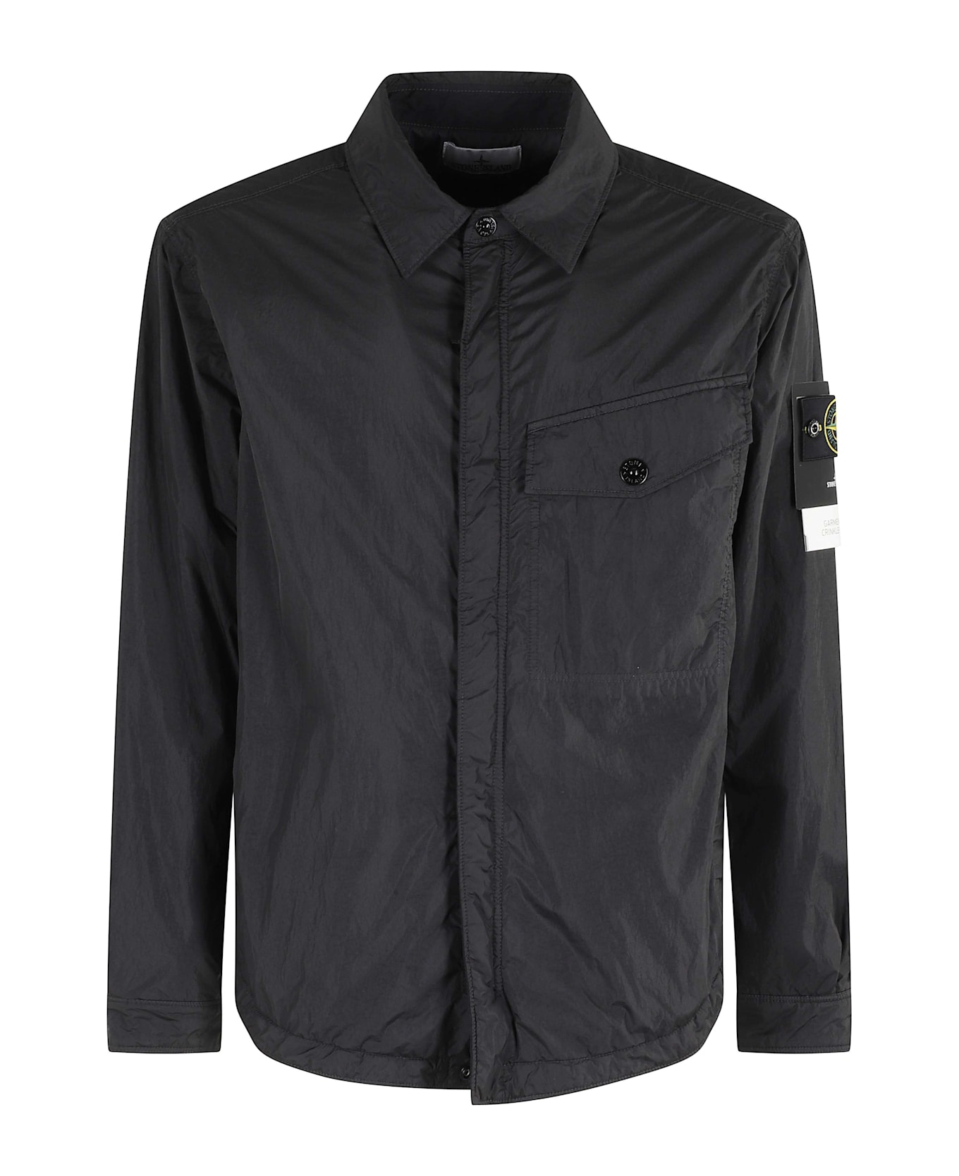 Jacket - Stone Island - Black color - Lapel collar - Recycled nylon fabric - Flap and button pocket - Zippered side welt pockets - Central zipper closure