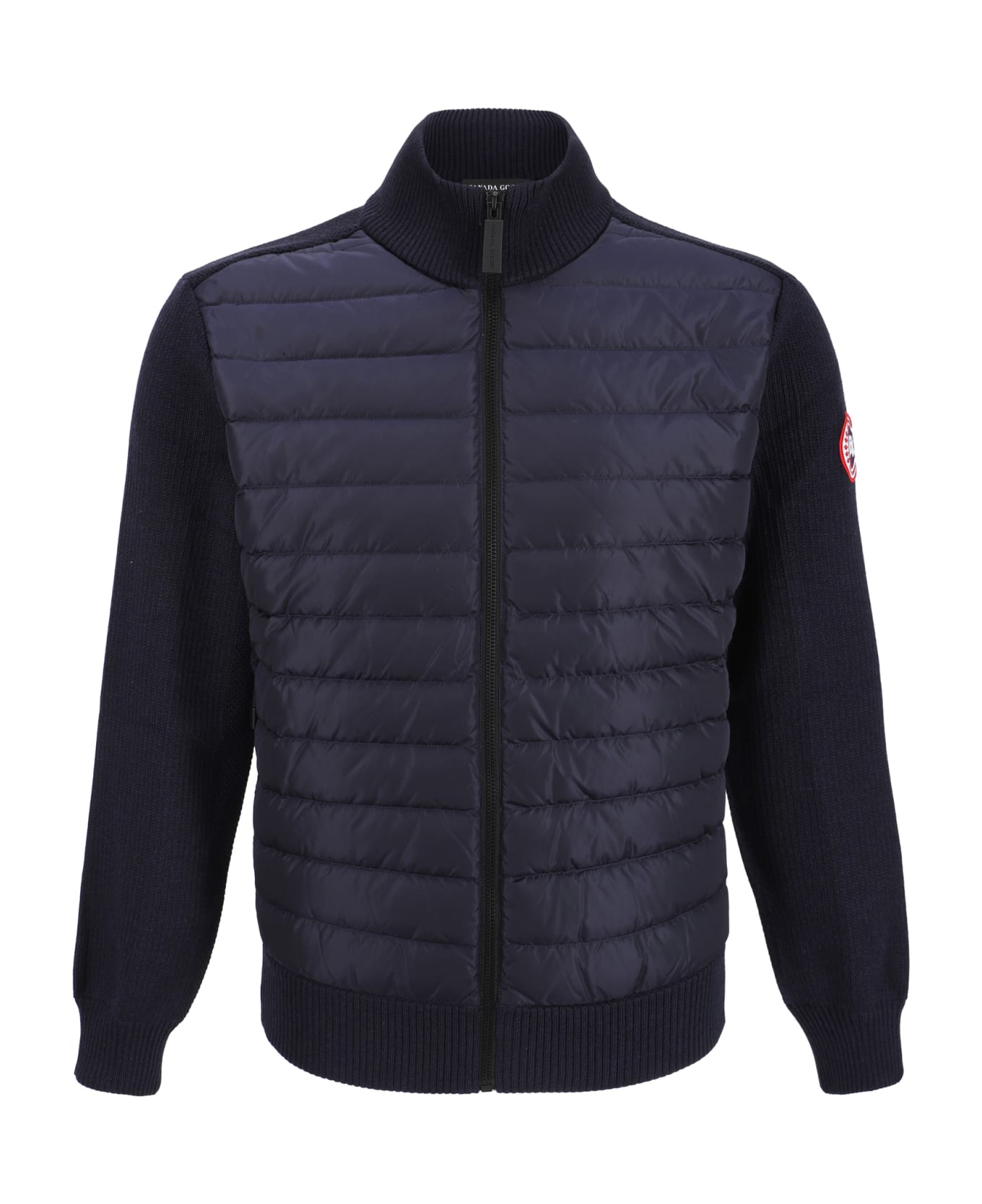 Hybridge down jacket by canada goose, ribbed high collar, front zipper closure, padded and quilted front side design, knit back side design and sleeves, ribbed hem, ribbed sleeves, brand's iconic logo patch applied on left sleeve, monochrome pattern, close fit. Composition: 50% % Polyamide, 50% % Wool