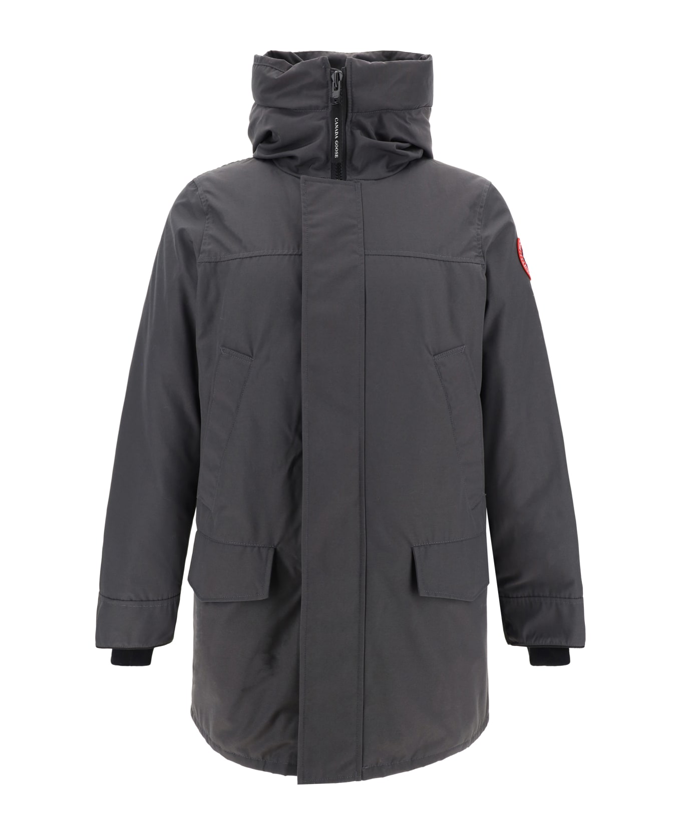 Langford parka jacket by canada goose, hooded high-neck model, front zipper closure with velcro strap, elastic ribbed cuffs, midi model, two large patch pockets on front with flap for closure, patch with iconic brand logo applied on left arm. Composition: 100% % Nylon