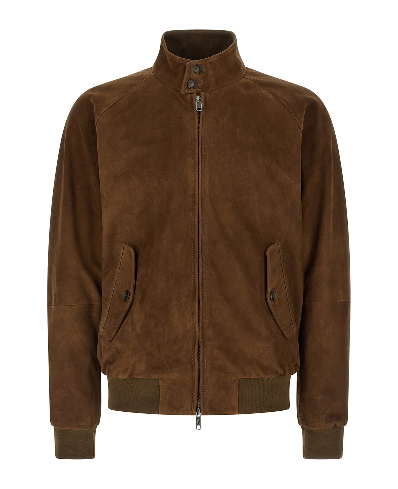 Suede 'Harrington - G9' jacket with breathable Coolmax® fabric lining with iconic Fraser Tartan pattern, two-button standing collar, umbrella shoulder strap, front zip closure, long raglan sleeves with cuffs, pockets, and headband on the hem.