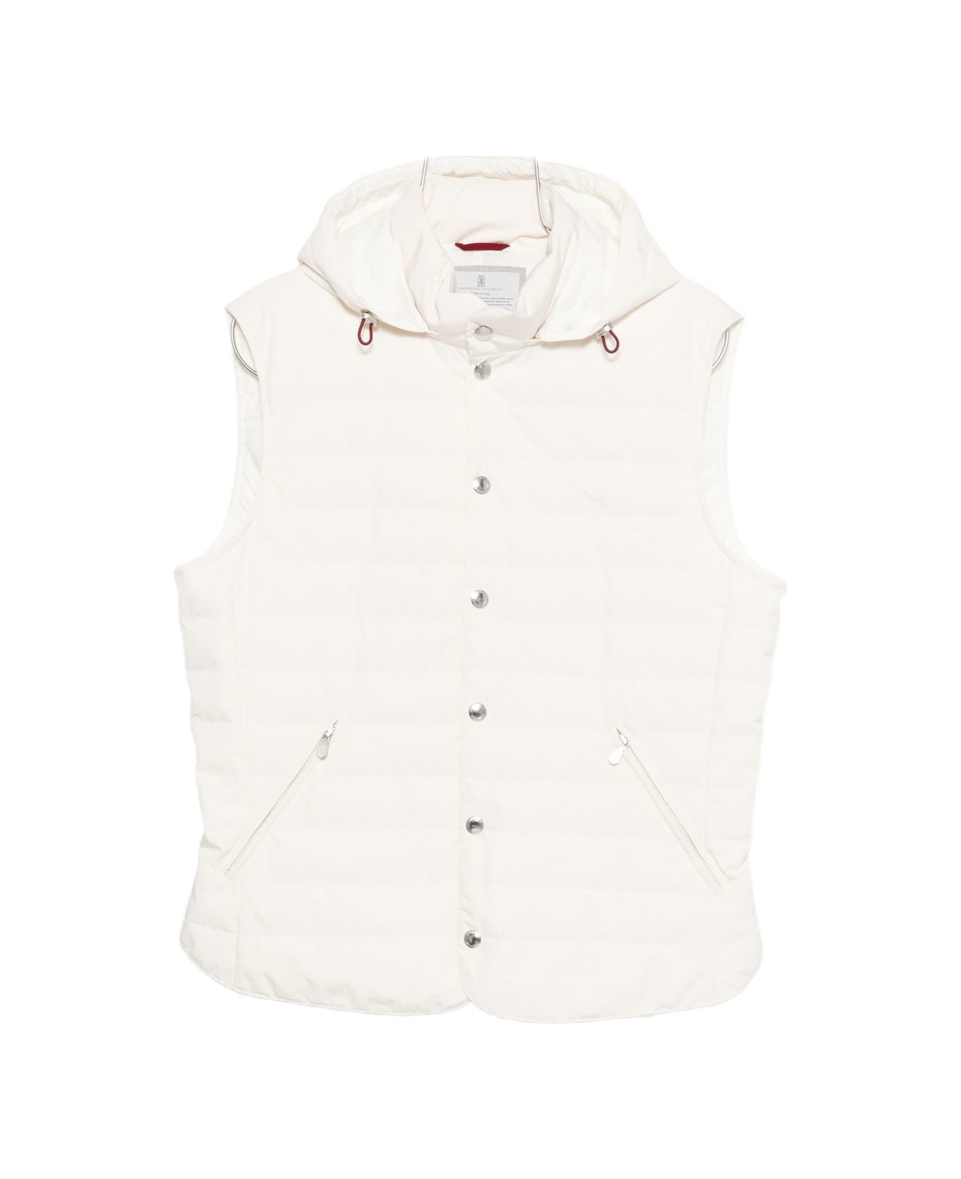 cream hooded quilted front zip pockets front button fastening sleeveless Composition: 70% Polyester, 30% Polyamide