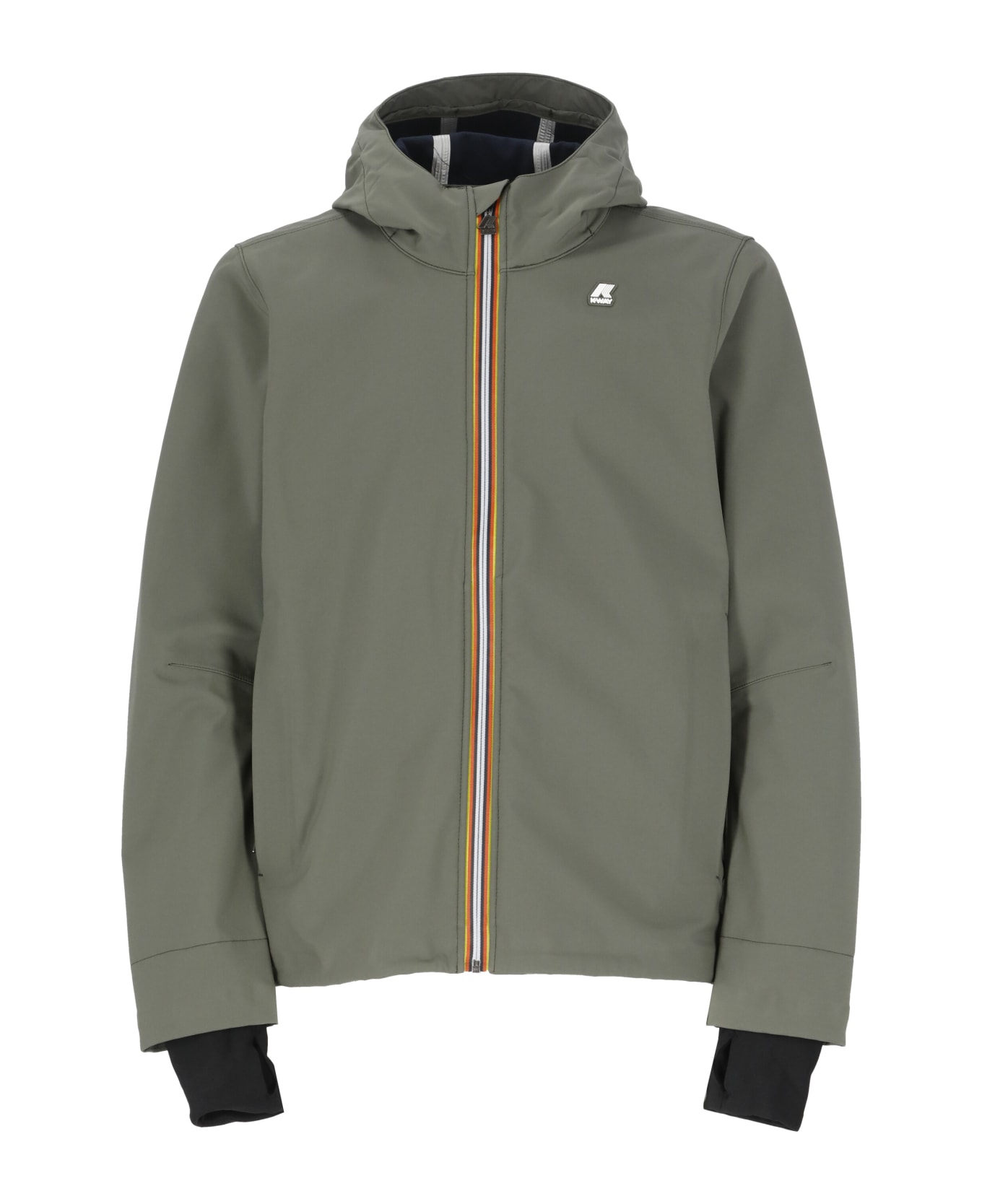 Jacko Bonded Jacket from K-Way: - Green K-Way waterproof tech fabric jacket for man - Hood with drawstrings - Long sleeves with contrasting fabric hem - Two front zip pockets - Front contrasting color and fabric logo - Pile lining - Front zip fastening with contrasting color iconic bandsComposition: 92% Polyester, 8% Polyurethane Lining:, 100% Polyamide