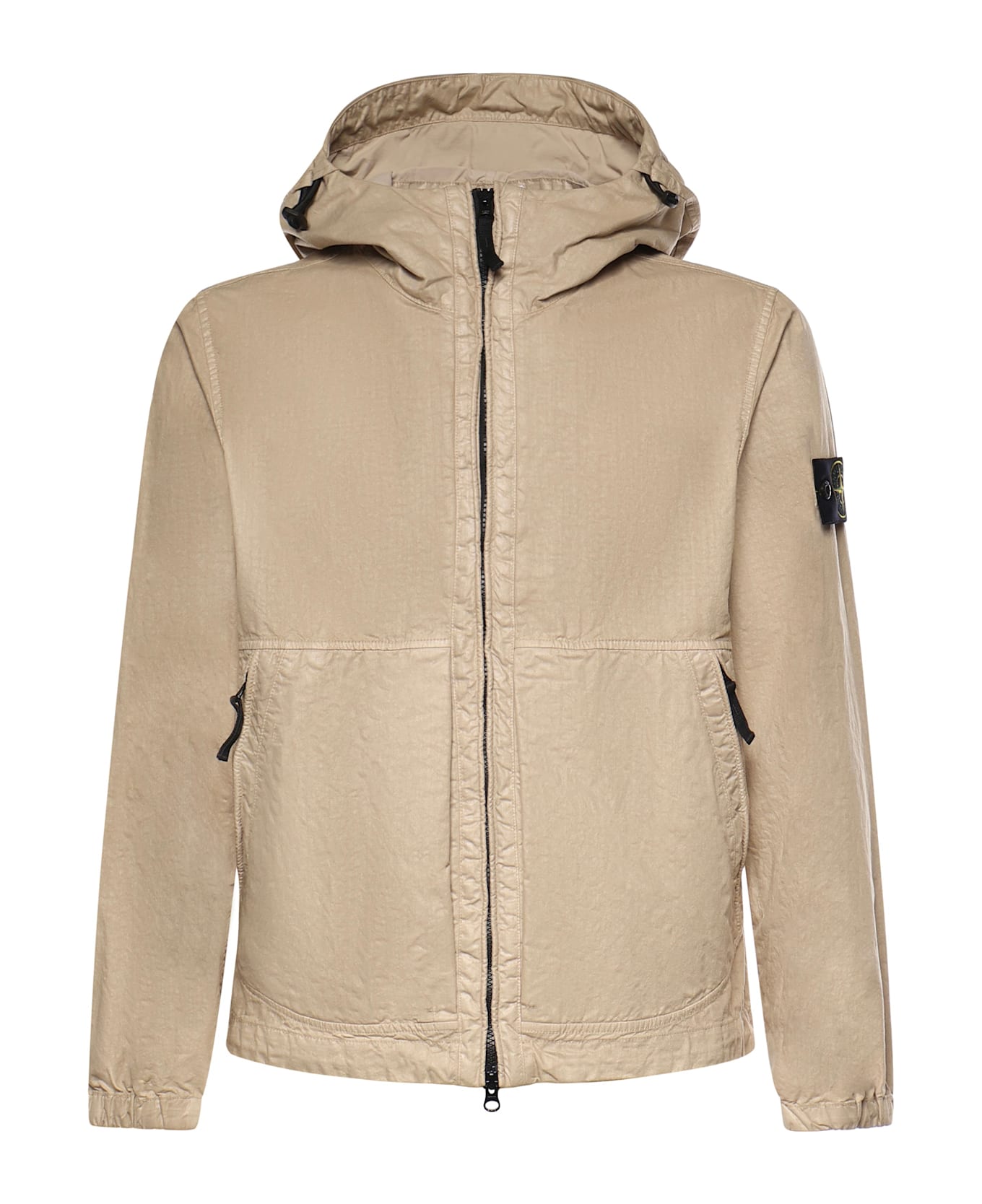 - Front zip closure - Slanted zip pockets - Drawstring hood - Logo badge on the sleeve - Regular fit - Size shown is S - Designer color: Desert