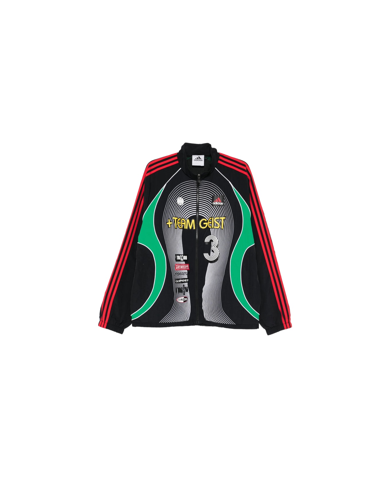 black striped zip fastening logo detail graphic print round neck