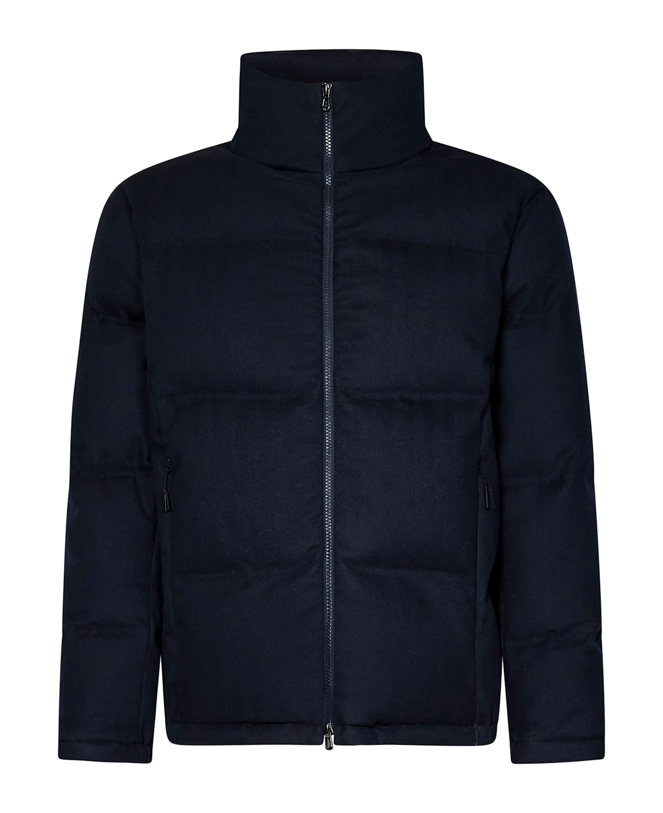 Composition: Full-zip Front Closure High Collar; Cord Insert On The Back Of The Neck Side Pockets With Zip Closure; Internal Pockets With Zip Closure Solaro Fabric Sections In Wool And Bio-nylon 2-layer Performance Membrane High Breathability, Water And Wind Resistant Lined In Ripstop Nylon Fabric Padded With 100% Recycled Down Regular Fit Color: Navy Blue Outer 1: 70% Cotton, 30% Cashmere; Outer 2: 70% Virgin Wool, 30% Polyamide; Padding: 80% Down, 20% Feather Made In Italy