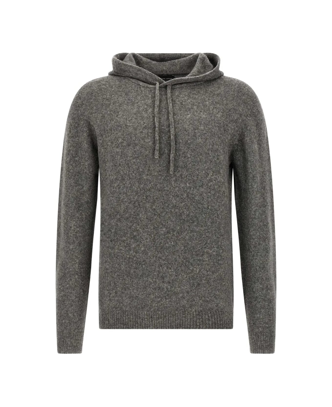 Roberto Collina sweater made of blended virgin wool, anthracite color, with a hood and adjustable laces, ribbed edges. Composition: 47% Wv, 32% Wk, 21% Pa