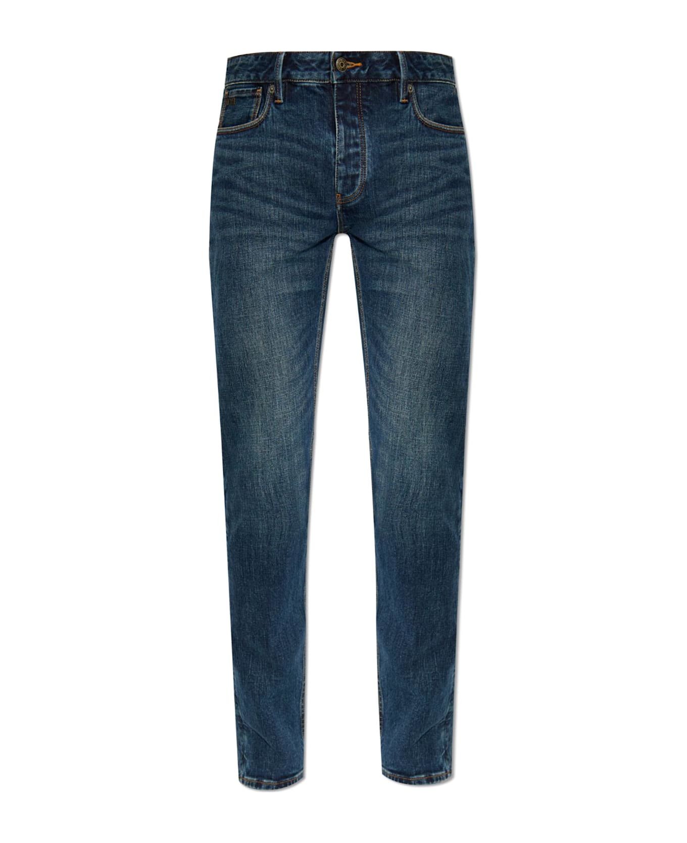 Experience refined sophistication with the J75 Slim Fit Jeans by Emporio Armani, where timeless design meets modern versatility. Crafted from premium stretch denim, these jeans sculpt the silhouette while offering exceptional comfort and flexibility for effortless, all-day wear. The deep navy hue, enhanced by subtle fading and delicately placed whiskering, exudes a contemporary yet understated charm. Signature orange contrast stitching and a classic five-pocket configuration add a distinct sense of character, while the metal EA logo and brand inscription on the front coin pocket attest to their exclusivity. Tailored with a tapered cut that embraces the body without restricting movement, the J75 embodies both dynamic style and everyday elegance, quintessential of Giorgio Armani's celebrated vision. Why choose this product? Luxurious stretch denim ensures supreme comfort and a flattering fit Exclusive Emporio Armani detailing for a sophisticated touch Contemporary slim fit design that complements modern styling Durable construction with artfully placed fading and whiskering Distinctive orange contrast stitching and iconic metal logo